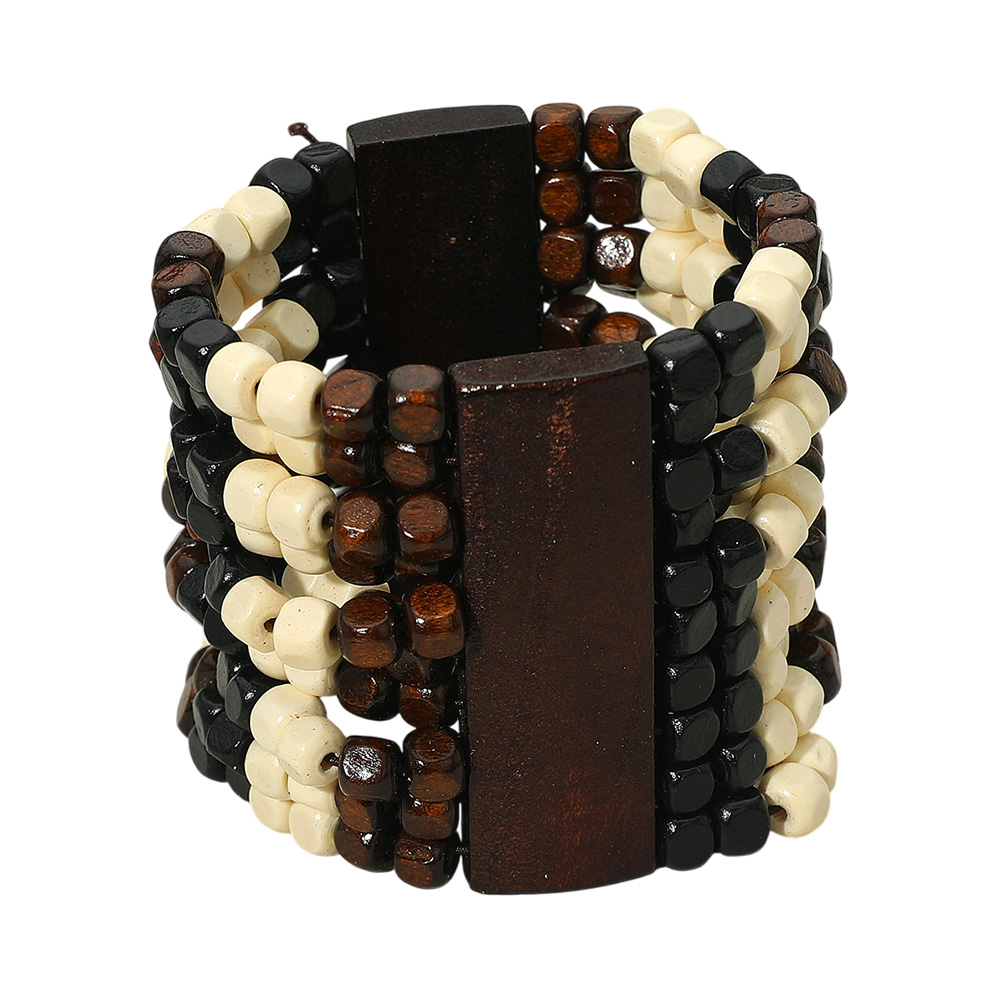 Details • Size : 2.25" H • Stretchable • Bold beaded stretch bracelet featuring a layered design that adds texture and character to any outfit. Comfortable and easy to wear, this statement accessory enhances boho and casual looks, making it a standout piece for stacking or wearing on its own.