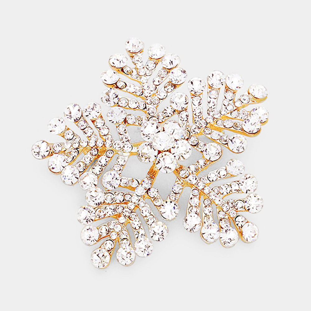 Details • Size : 2.5" X 2.5" • Pin Brooch • Elegant crystal snowflake rhinestone brooch pin featuring a layered icy design with shimmering stones. A perfect accessory to add winter sparkle to coats, scarves, holiday outfits, or seasonal events. • Lead and Nickel Compliant
