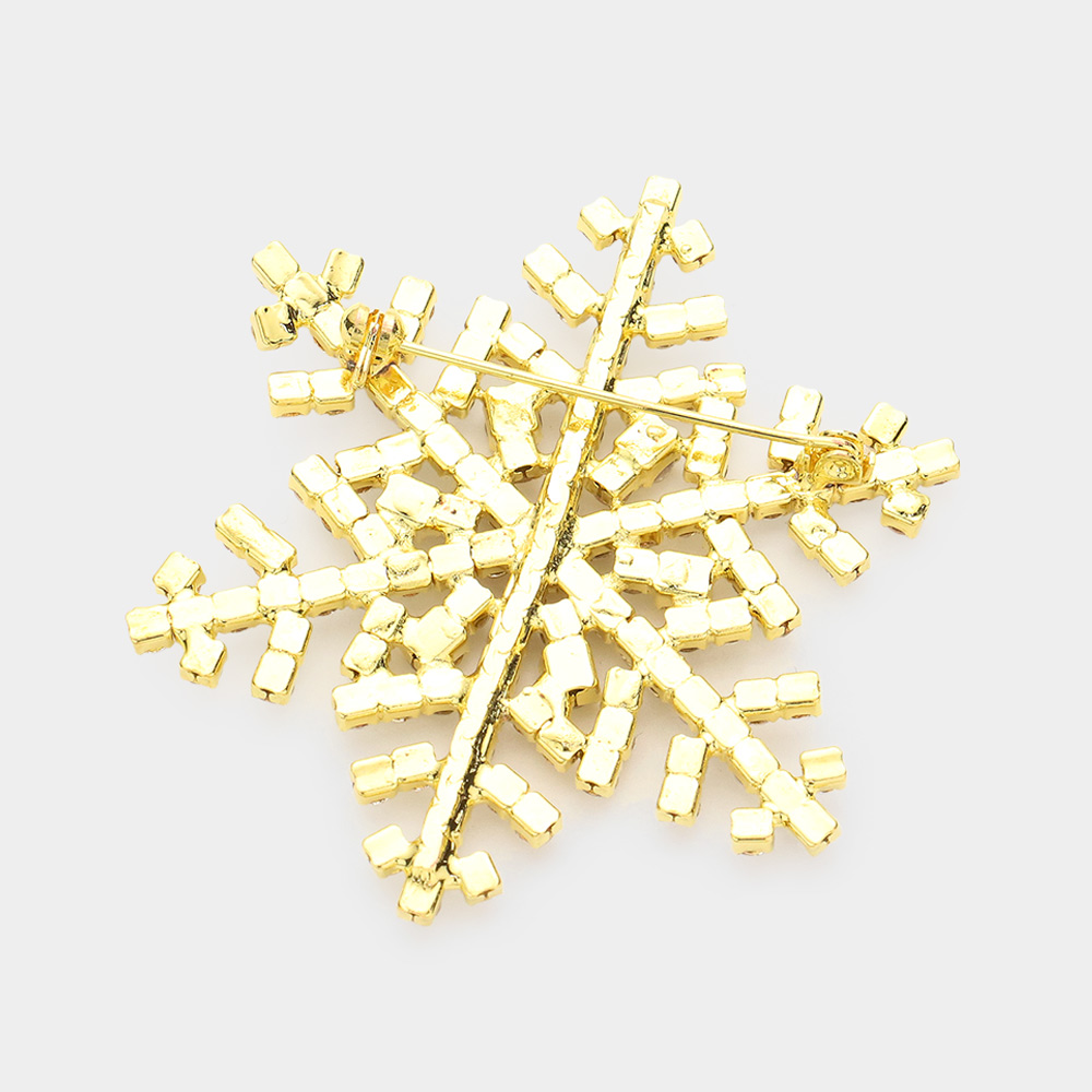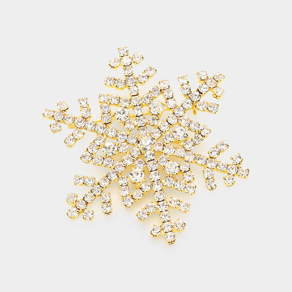Details • Size : 2" X 2" • Pin Brooch • Elegant snowflake brooch featuring precision-set faceted accents in a radiant, symmetrical design. A refined accessory for jackets, scarves, hats, or evening wear, adding seasonal charm and subtle sparkle while remaining lightweight, versatile, and easy to style for festive or everyday looks.