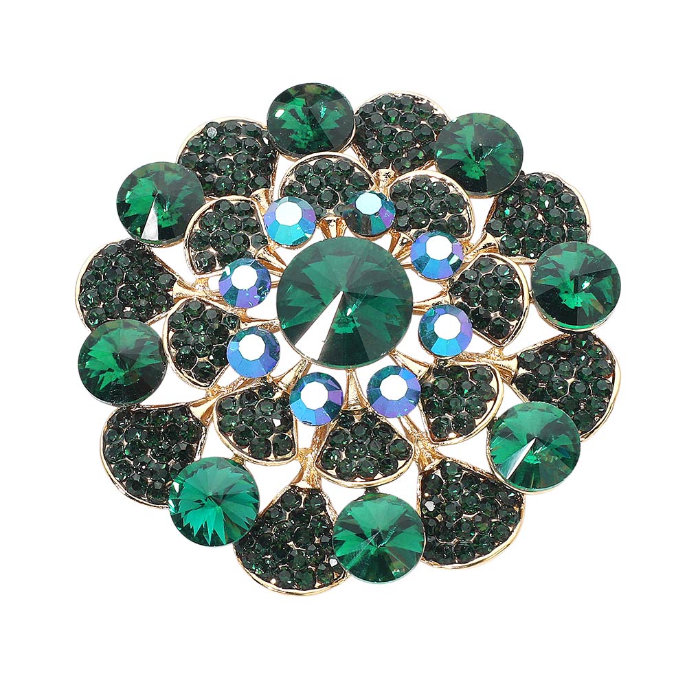 Details • Size : 3" X 3" • Pin Brooch • This stunning round crystal flower brooch features layered gem accents that create a dazzling floral design. Perfect for elevating any outfit, it adds a touch of vintage-inspired glamour and refined brilliance to jackets, scarves, or formal attire. • Lead and Nickel Compliant