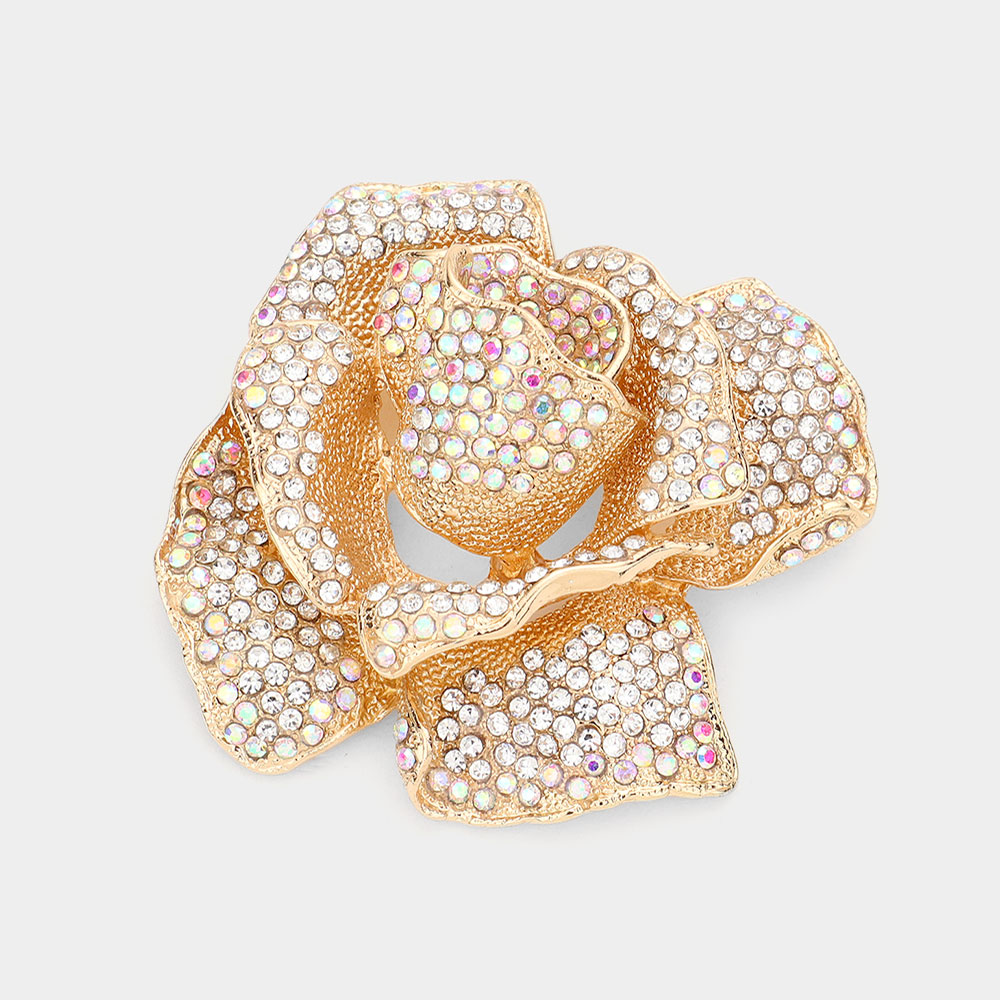 Rhinestone Embellished Floral Starburst Pin Brooch