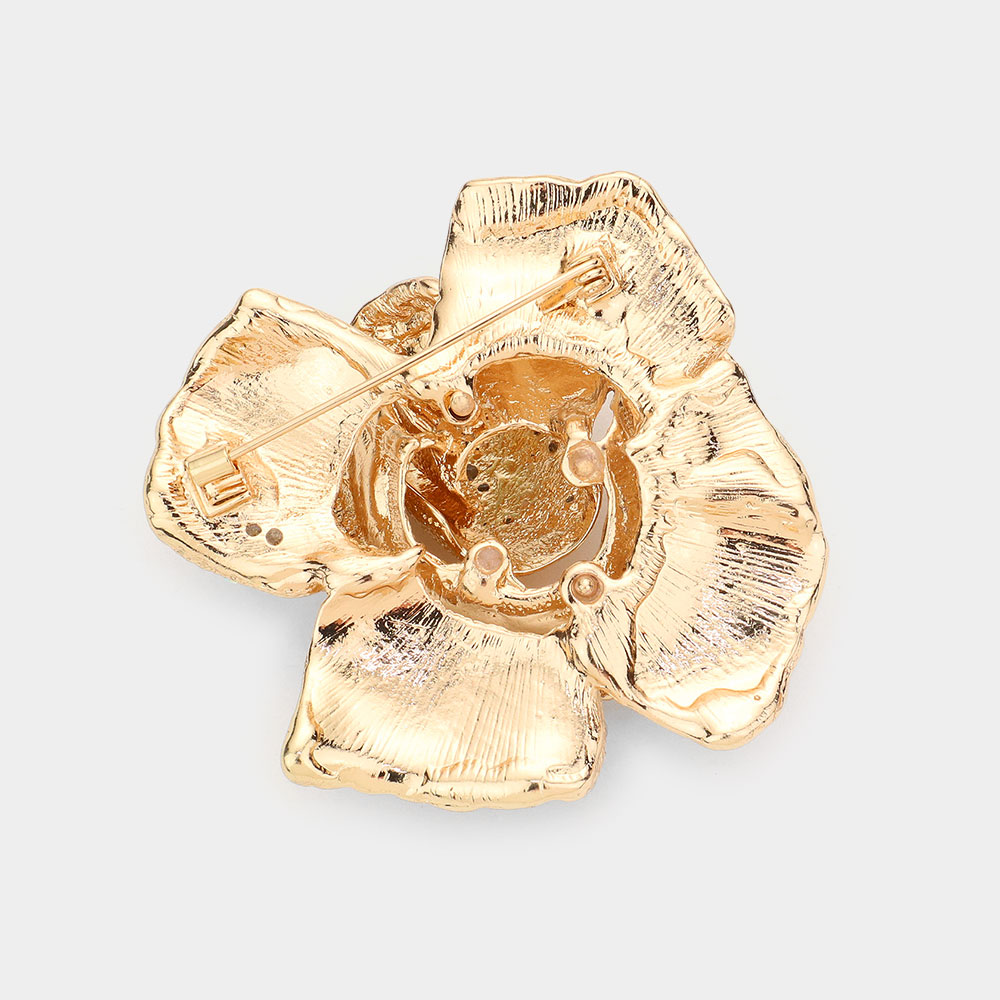 Bold Pearly Petal Floral Link Triple Pearl Strand Statement Necklace