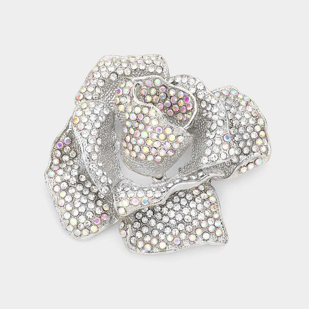 Floral Crystal Rhinestone Cluster Evening Necklace