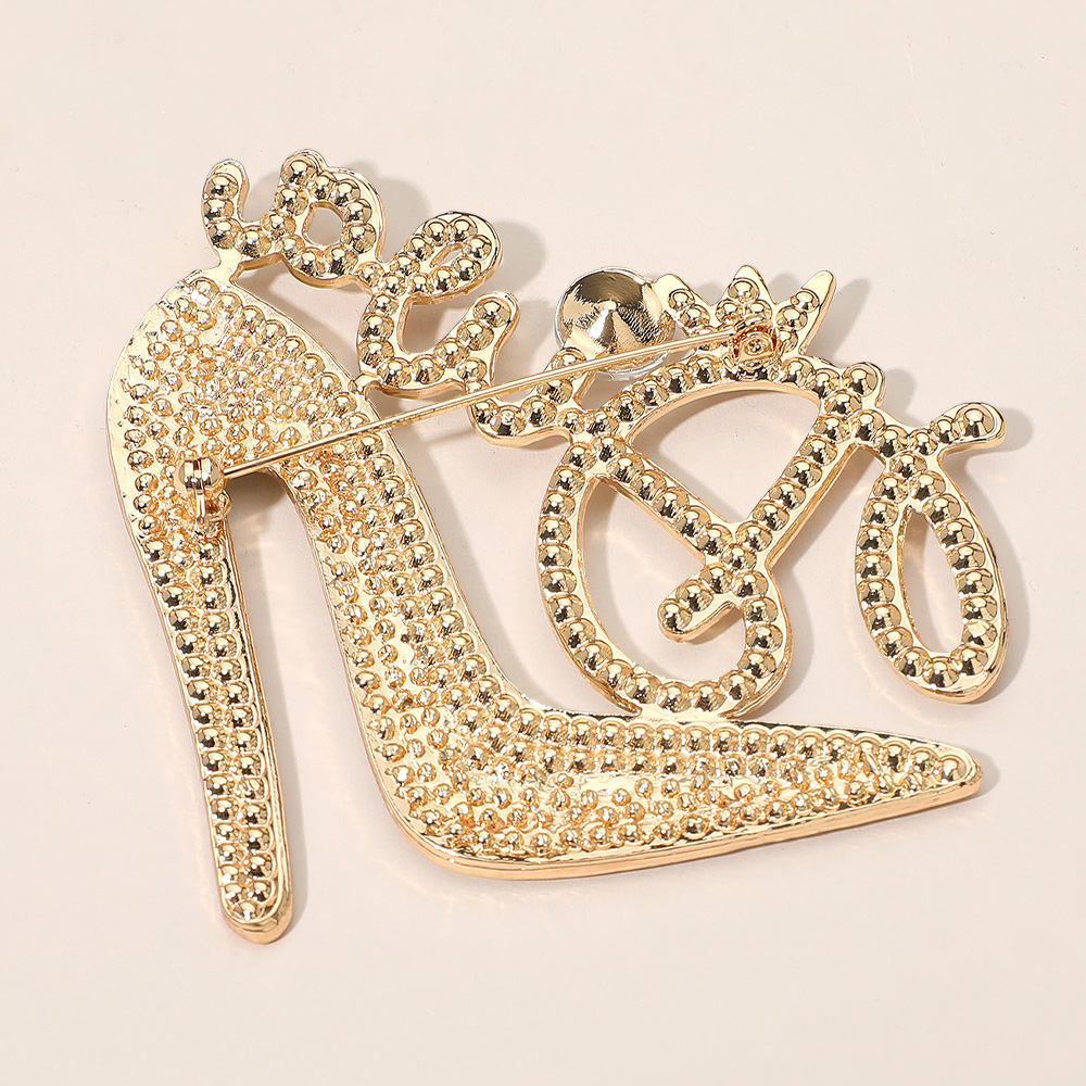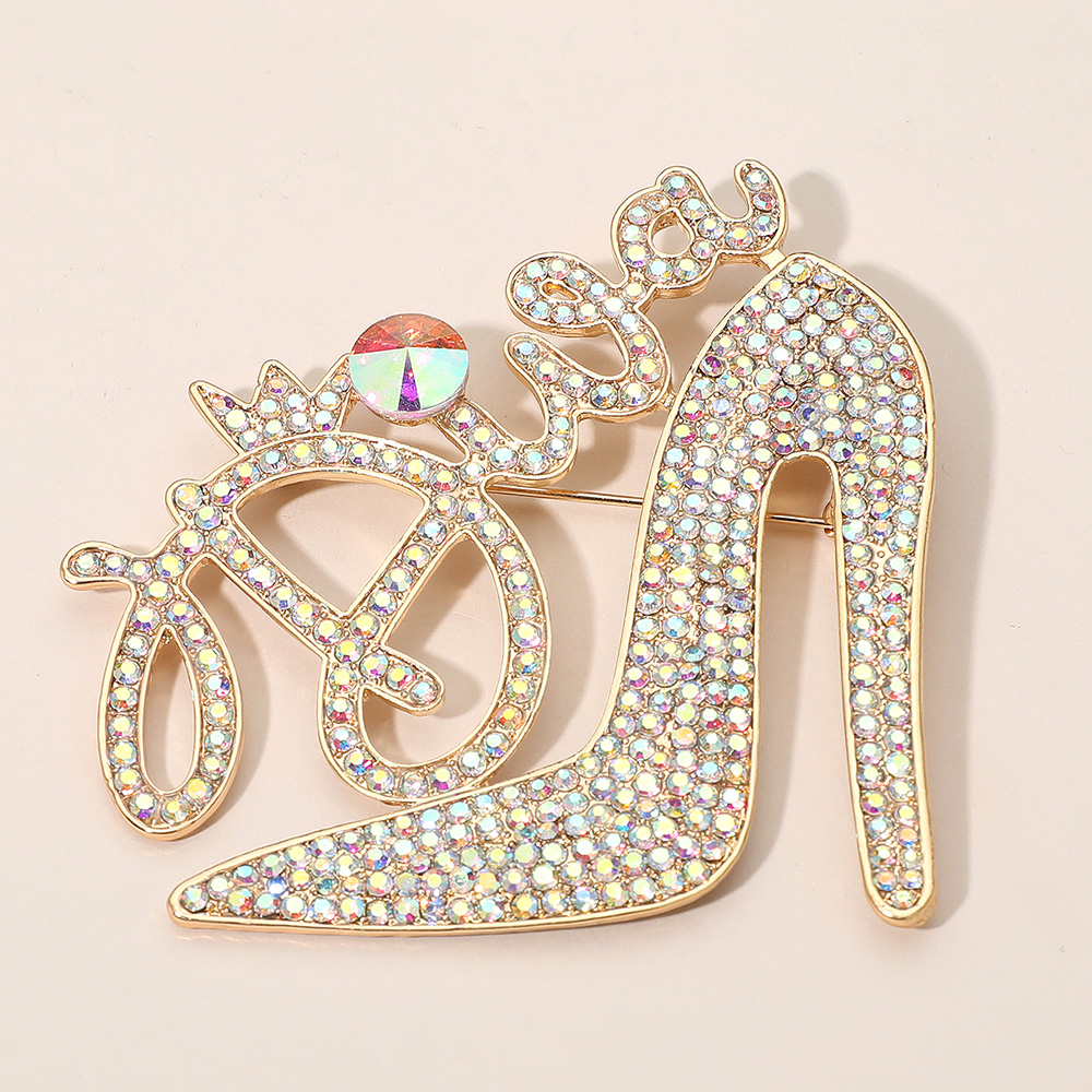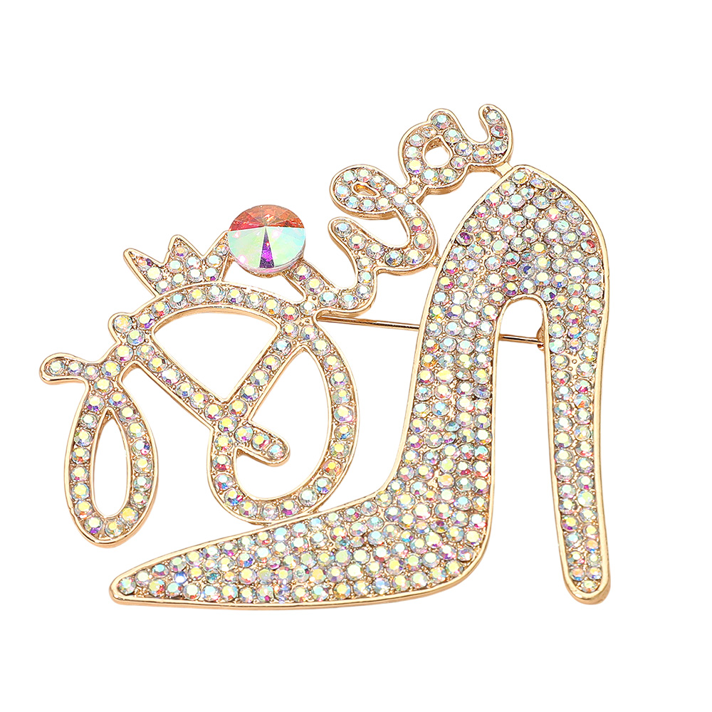 Diva Message Glamorous High Heel Crystal Rhinestone Pin Brooch