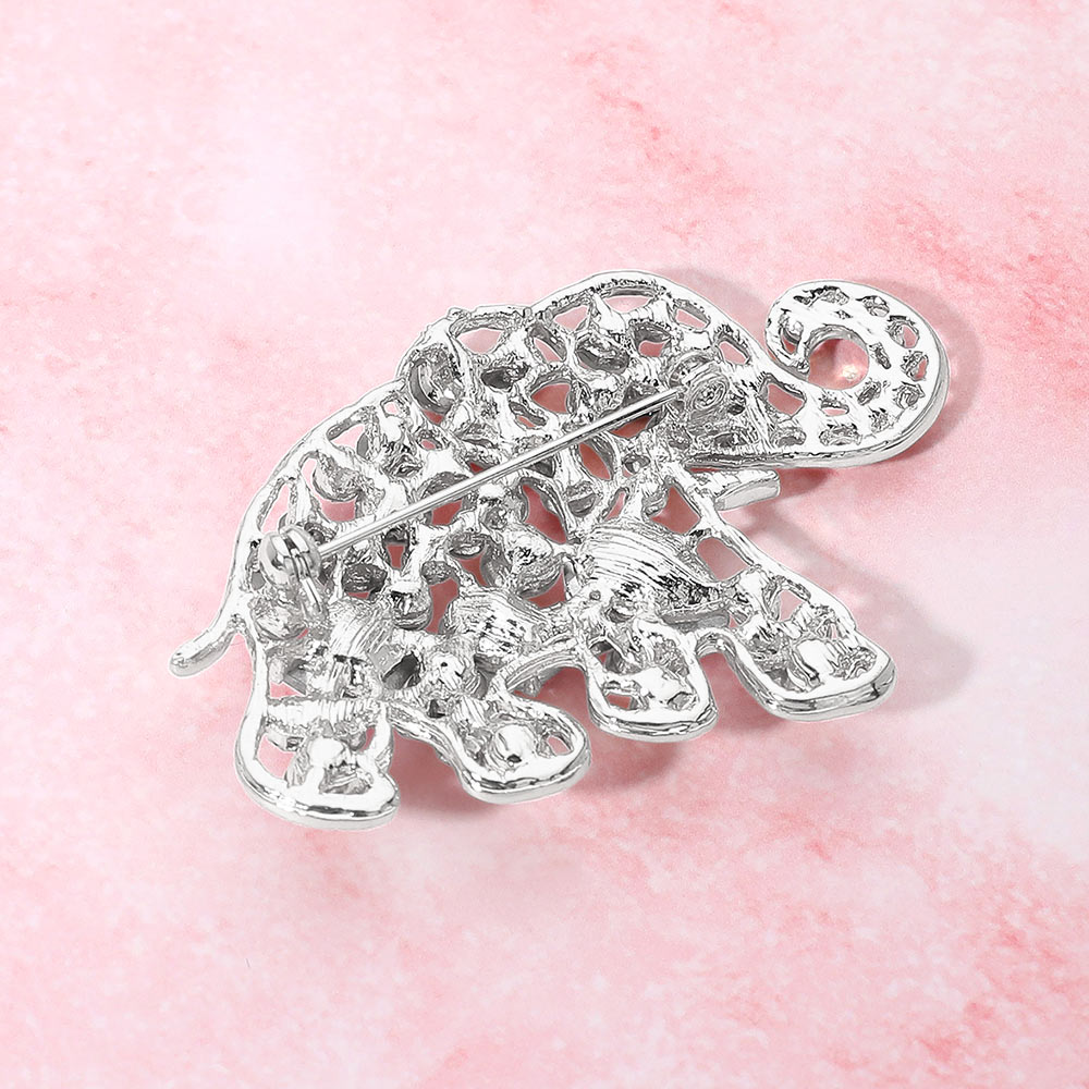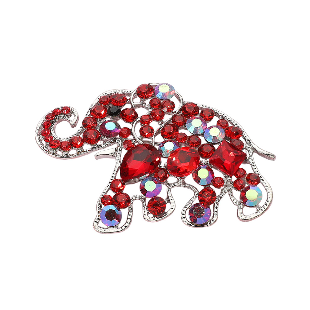 Details • Size : 2.75" X 1.75" • Pin Brooch • Bring charm and elegance to your look with this jeweled elephant brooch, adorned with sparkling stones for a radiant finish. Perfect as a statement accessory, it adds a playful yet sophisticated touch to jackets, dresses, scarves, or bags. A versatile animal pin ideal for gifting or personal style. • Lead and Nickel Compliant