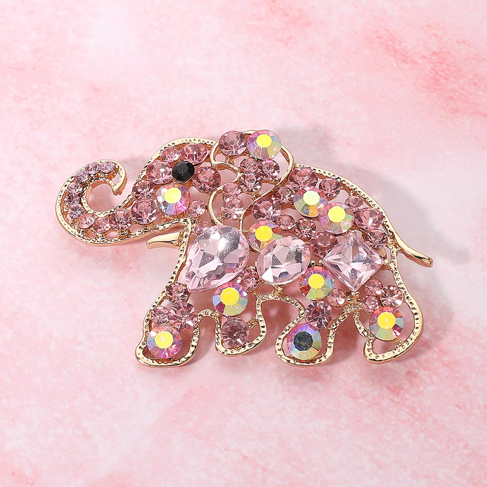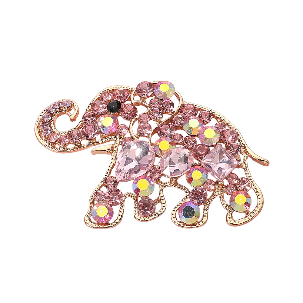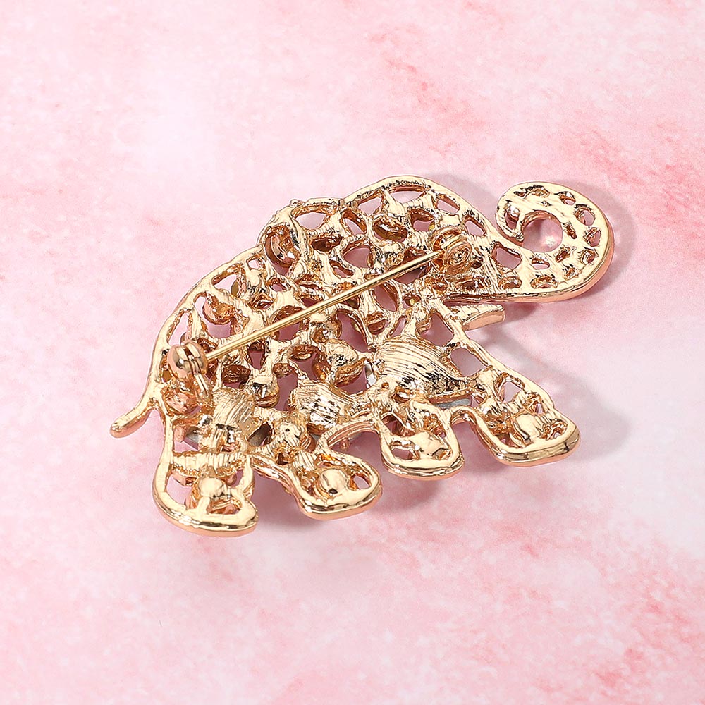 Details • Size : 2.75" X 1.75" • Pin Brooch • Bring charm and elegance to your look with this jeweled elephant brooch, adorned with sparkling stones for a radiant finish. Perfect as a statement accessory, it adds a playful yet sophisticated touch to jackets, dresses, scarves, or bags. A versatile animal pin ideal for gifting or personal style. • Lead and Nickel Compliant