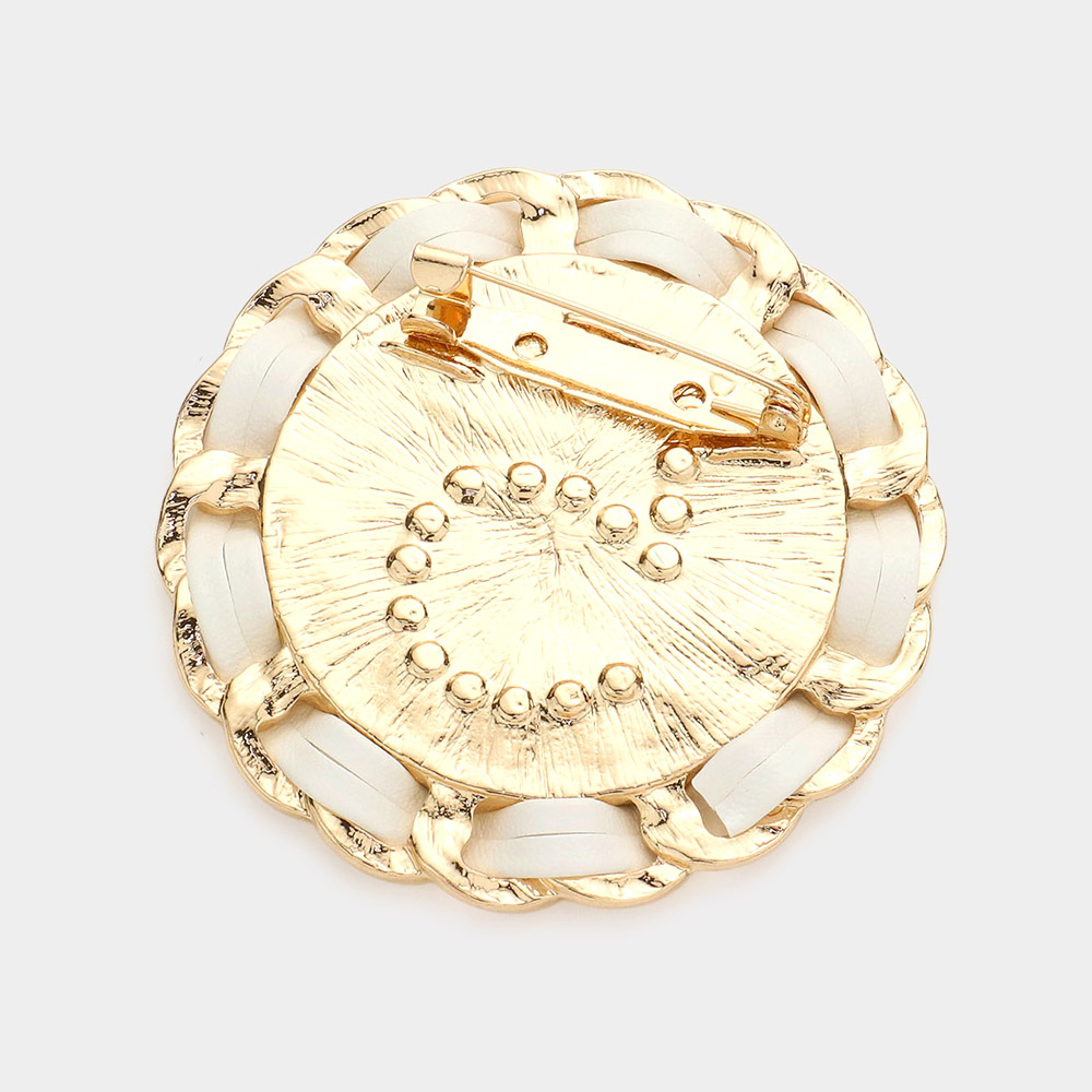 No. 5 Metal Chain Trimmed Round Pin Brooch