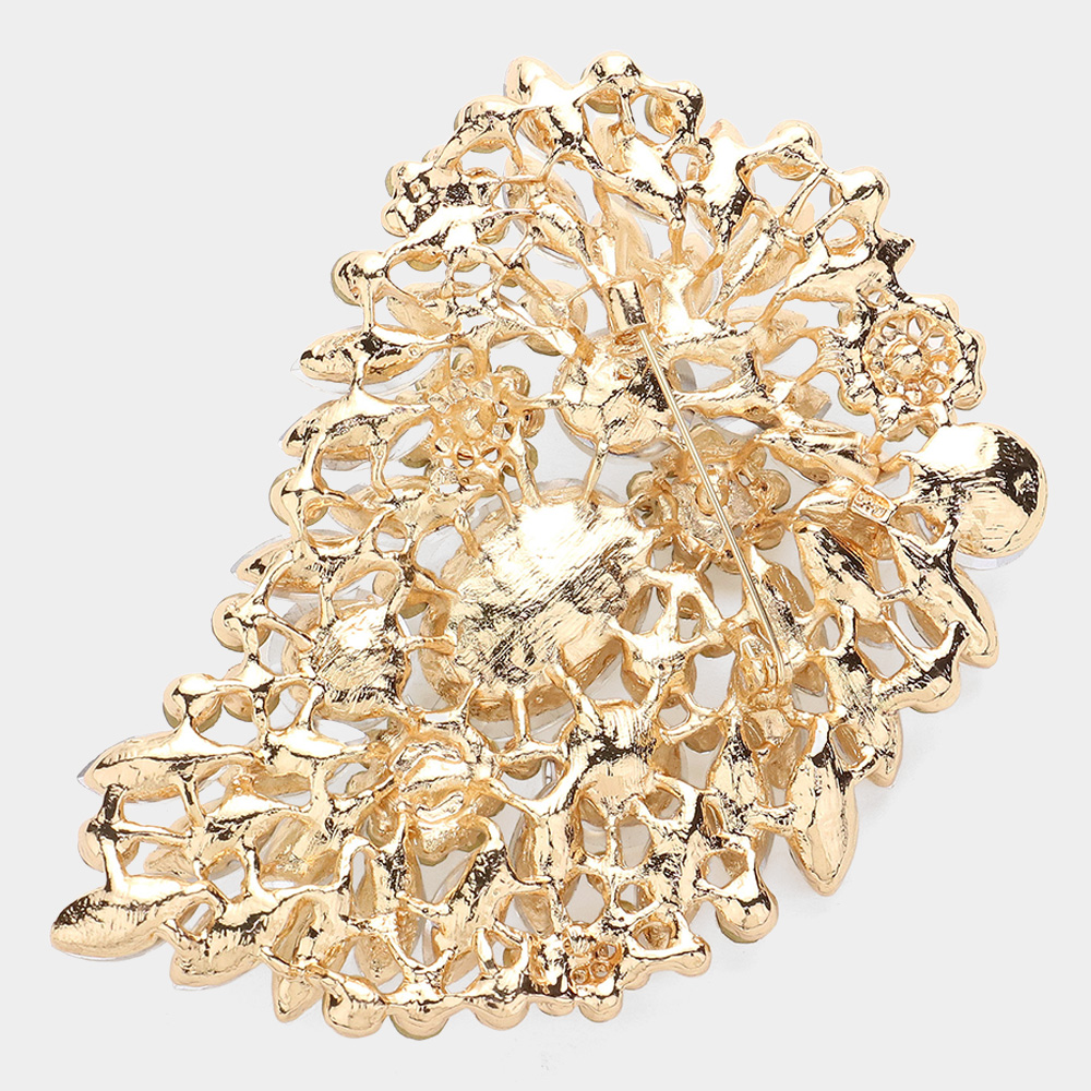 Details • Size : 3" X 4" • Pin Brooch • Eye-catching statement brooch featuring a clustered gemstone design that adds instant glamour to any outfit. Perfect for special occasions or elevating everyday style, this radiant accessory brings a touch of elegance and sparkle to your look. • Lead and Nickel Compliant