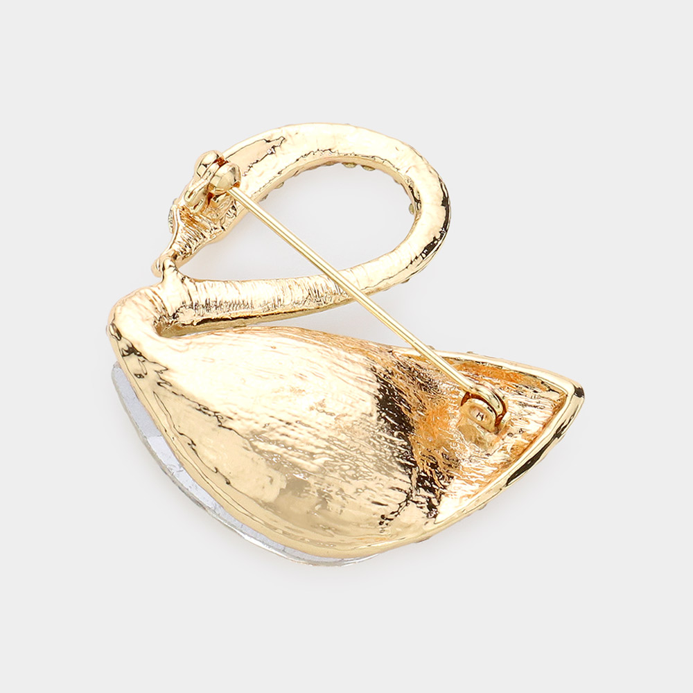 Details • Size : 1.6" X 1.6" • Pin Brooch • Add a touch of sophistication with this elegant swan brooch featuring sparkling crystal accents and a radiant gemstone centerpiece. Perfect for enhancing formal attire, evening wear, or as a thoughtful gift, it blends timeless charm with eye-catching brilliance.