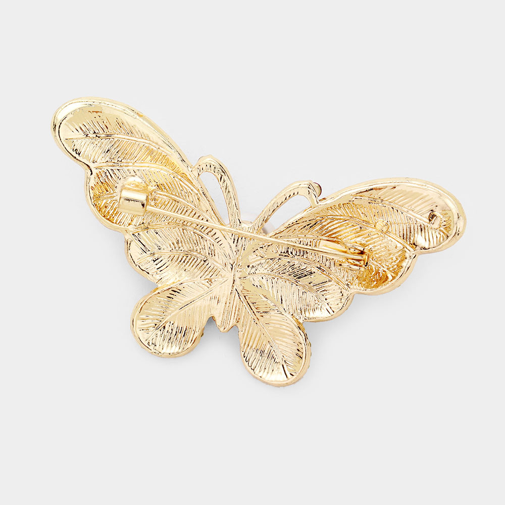 Pearl Rhinestone Pave Butterfly Pin Brooch