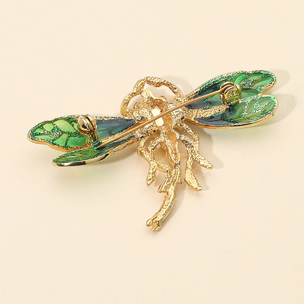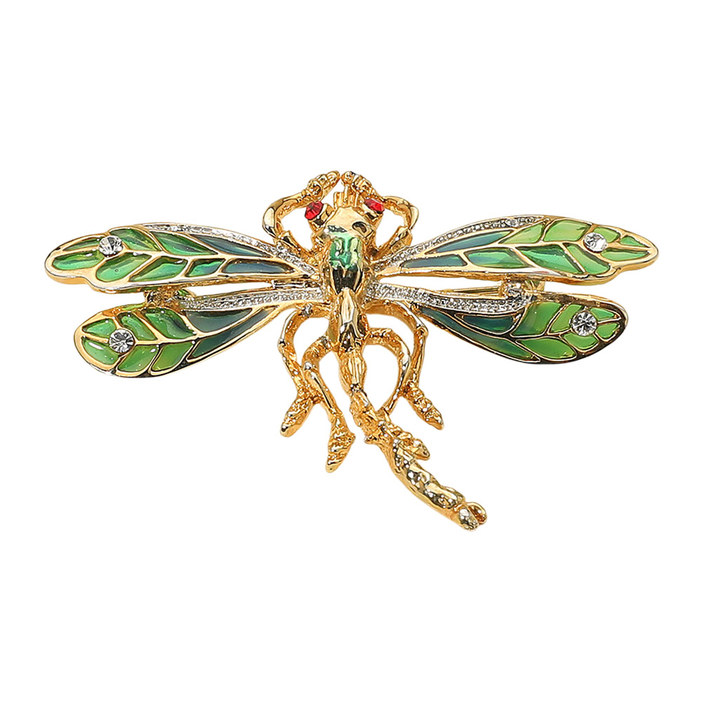 Details • Size : 2.5" X 1.6" • Pin Brooch • Elegant dragonfly brooch featuring detailed enamel wings with crystal accents and a refined metallic finish. This statement accessory brings a touch of nature-inspired beauty to blazers, dresses, or scarves, making it a sophisticated and eye-catching addition to any outfit.