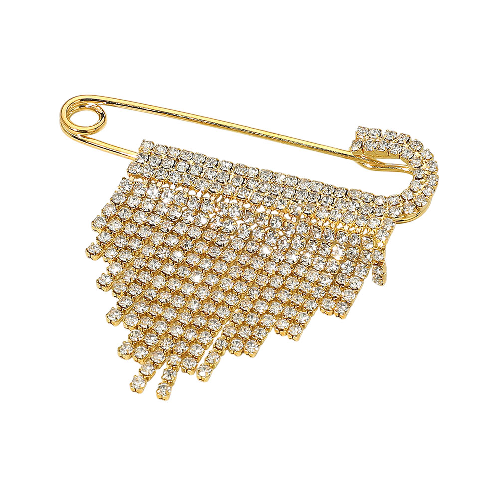 Details • Size : 2.9" X 2.9" • Pin Brooch • Elegant rhinestone safety pin brooch featuring cascading layered fringe design. A chic statement accessory to add sparkle to jackets, scarves, bags, or dresses, perfect for both casual and formal styling. • Lead and Nickel Compliant