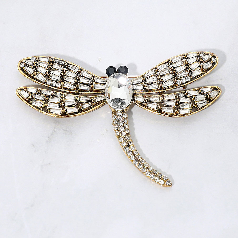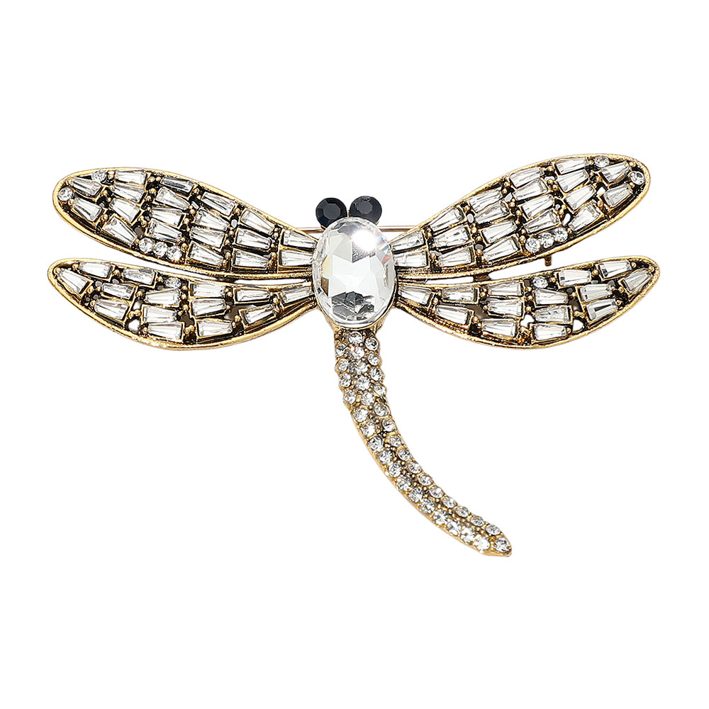 Details • Size : 3" X 2.2" • Pin Brooch • Elegant dragonfly brooch featuring shimmering crystal accents and intricate wing details. This statement accessory adds a touch of sophistication and charm to jackets, scarves, or bags, making it a perfect piece for both everyday wear and special occasions. • Lead and Nickel Compliant