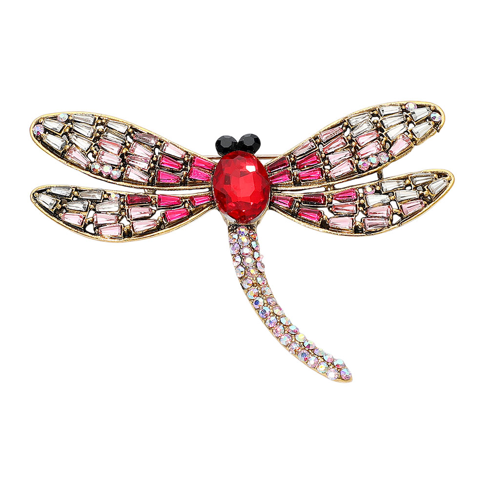 • Elegant dragonfly brooch featuring shimmering crystal accents and intricate wing details. This statement accessory adds a touch of sophistication and charm to jackets, scarves, or bags, making it a perfect piece for both everyday wear and special occasions.