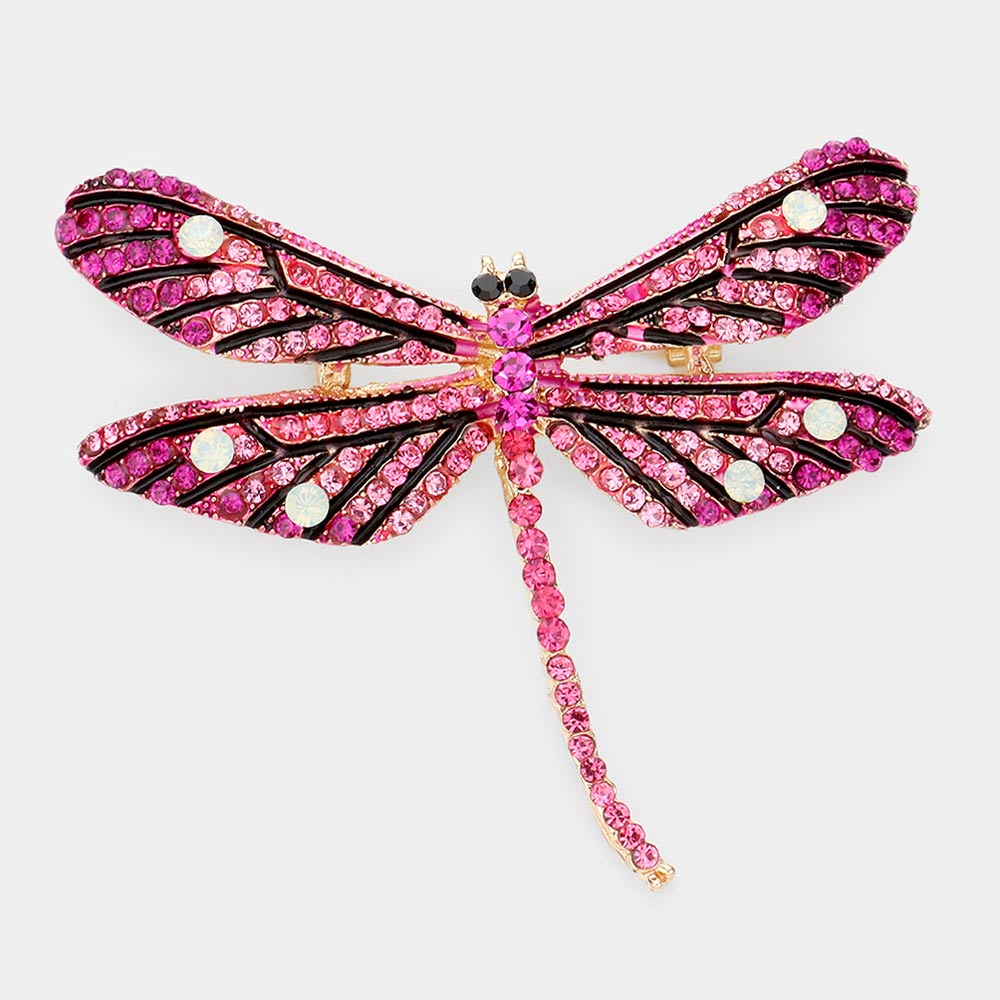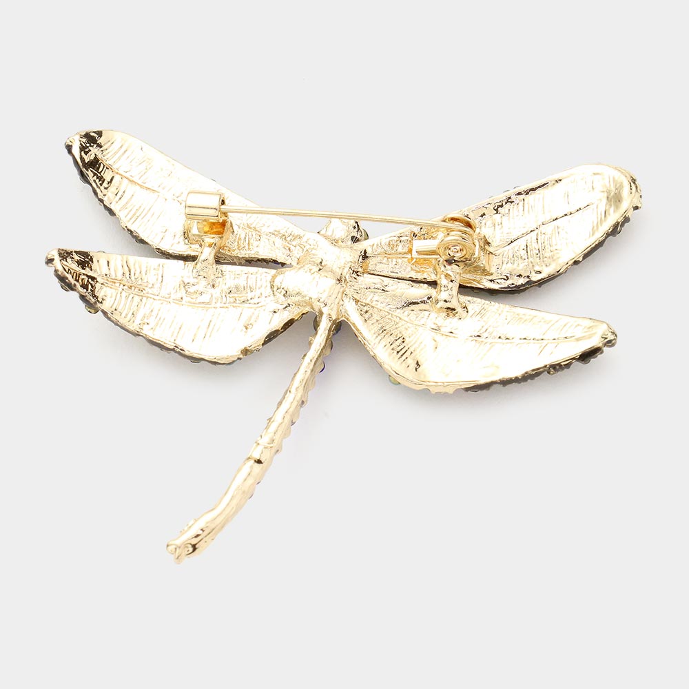 Stone Embellished Metal Dragonfly Pin Brooch