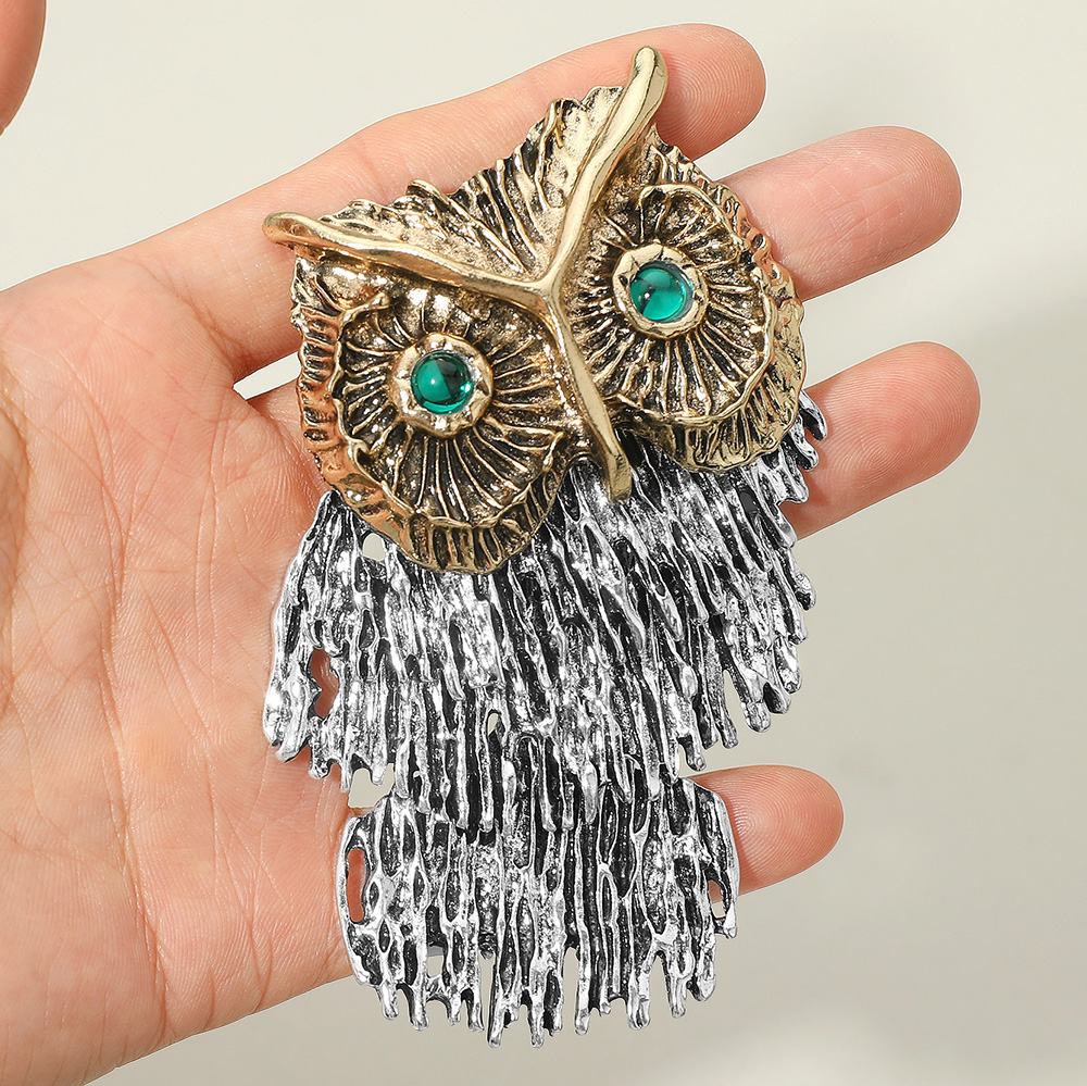 Details • Size : 2.25" X 3.6" • Pin Brooch • Showcase your unique style with this intricately designed owl brooch, featuring detailed craftsmanship and a striking finish. Perfect as a standout accessory or a meaningful gift, this elegant pin adds charm, sophistication, and a touch of whimsy to any outfit. • Lead and Nickel Compliant
