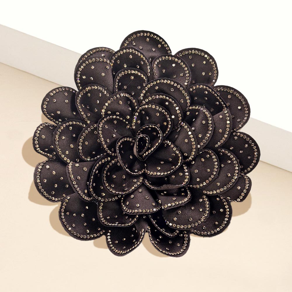 Details • Size : 5.5" X 5.5" • Dual : Brooch / Hair Pinch Clip • Enhance any outfit or hairstyle with this layered floral brooch and hair clip featuring shimmering accents and dimensional petal detail. Designed for versatile styling on scarves, jackets, bags, or hair, it makes a graceful gift or everyday accessory that adds refined sparkle and timeless elegance.