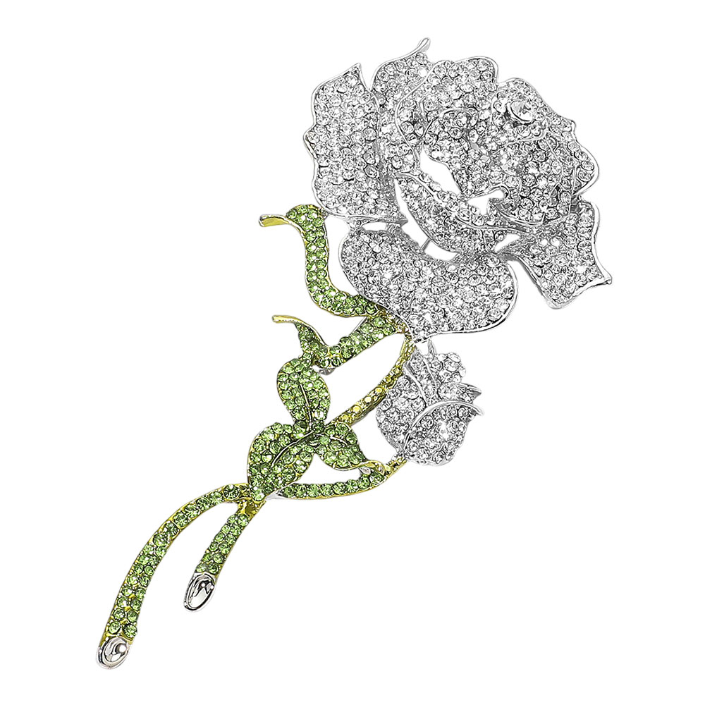 Bold Elegant Rhinestone Rose Stem Pin Brooch Bold Elegant Rhinestone Rose Stem Pin Brooch Bold Elegant Rhinestone Rose Stem Pin Brooch