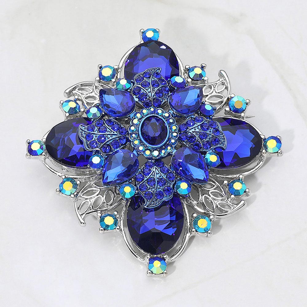 Details • Size : 3.25" X 3.5" • Pin Brooch • Elevate any outfit with this vintage floral crystal brooch designed with layered faceted accents and ornate detailing. Perfect for pinning on jackets, scarves, bags, or dresses, it adds dramatic sparkle and refined style, making it a standout accessory or thoughtful gift for special occasions and everyday elegance. • Lead and Nickel Compliant
