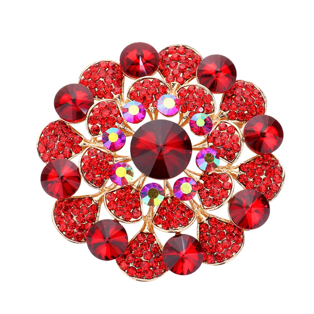 Details • Size : 3" X 3" • Pin Brooch • This stunning round crystal flower brooch features layered gem accents that create a dazzling floral design. Perfect for elevating any outfit, it adds a touch of vintage-inspired glamour and refined brilliance to jackets, scarves, or formal attire. • Lead and Nickel Compliant