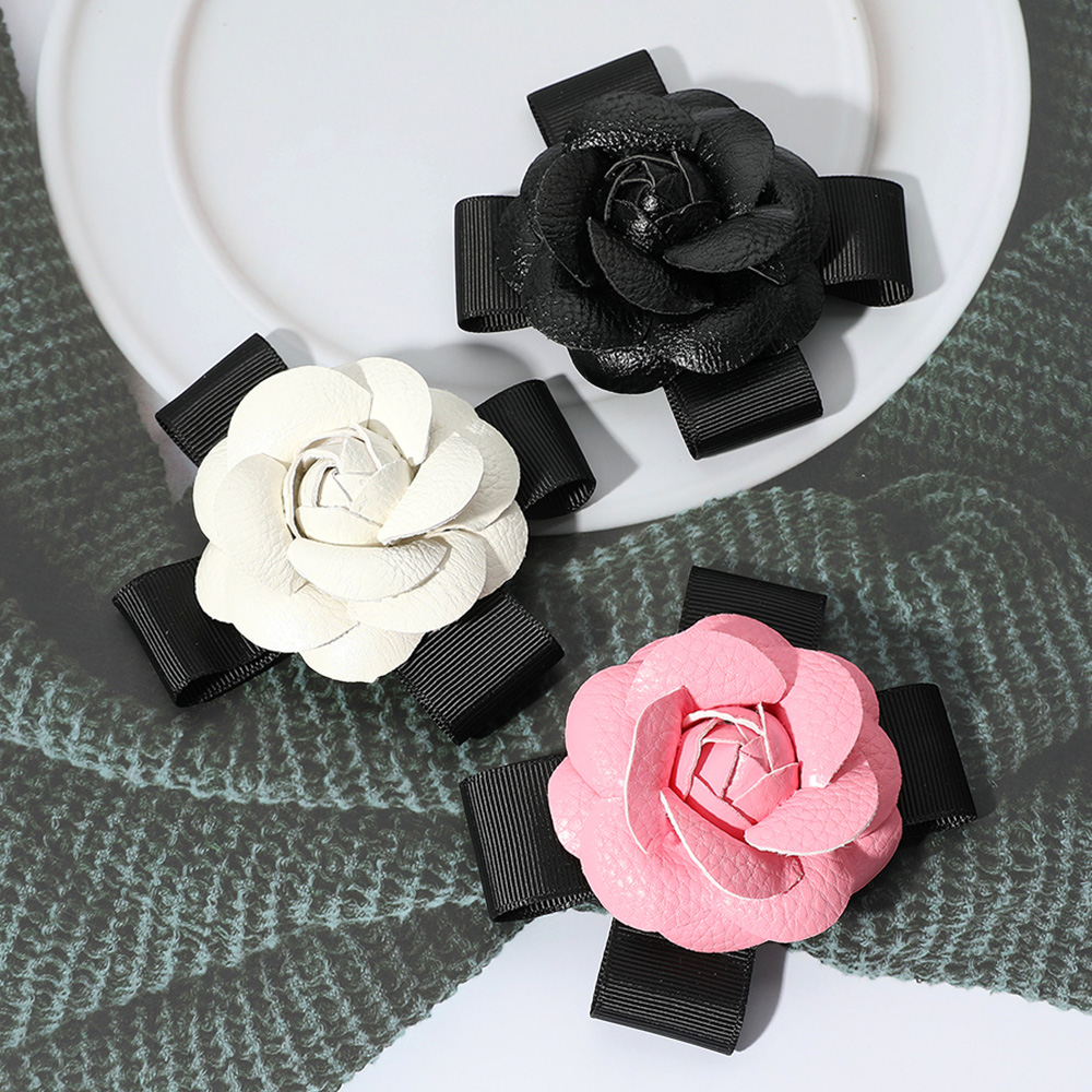 Details • Size : 3.25" X 2.8" • Dual : Pin Brooch / Hair Pinch Clip • Versatile brooch featuring a textured black flower and satin bow, complete with both pin and clip fastenings. Perfect for accessorizing jackets, scarves, hats, or handbags with a touch of elegance. • Lead and Nickel Compliant