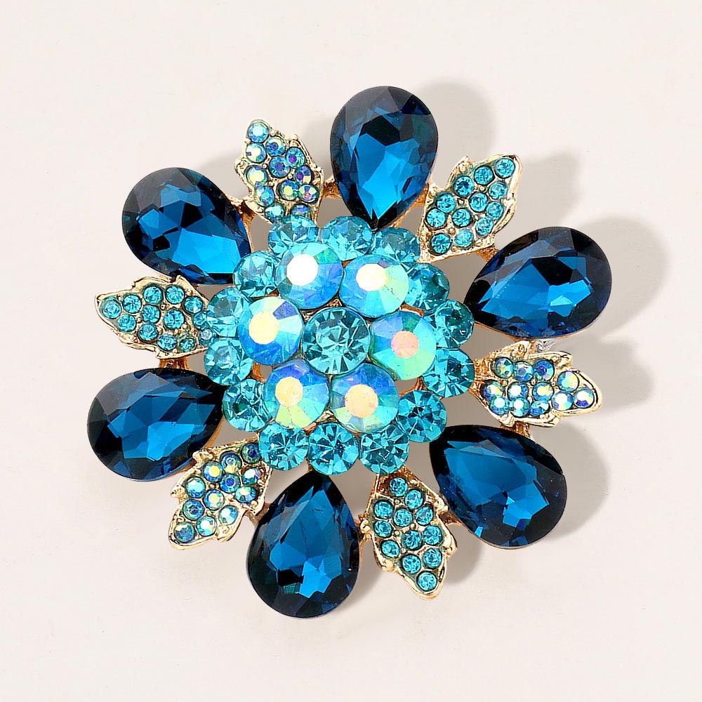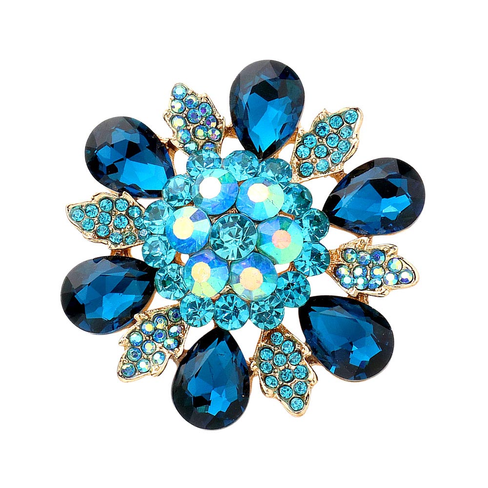 Details • Size : 2.5" x 2.5" • Pin Brooch • This elegant crystal flower brooch adds a radiant touch to any outfit with its beautifully arranged sparkling stones and refined floral silhouette. Perfect for elevating everyday looks or enhancing formal attire, it offers timeless charm and eye-catching brilliance. • Lead and Nickel Compliant
