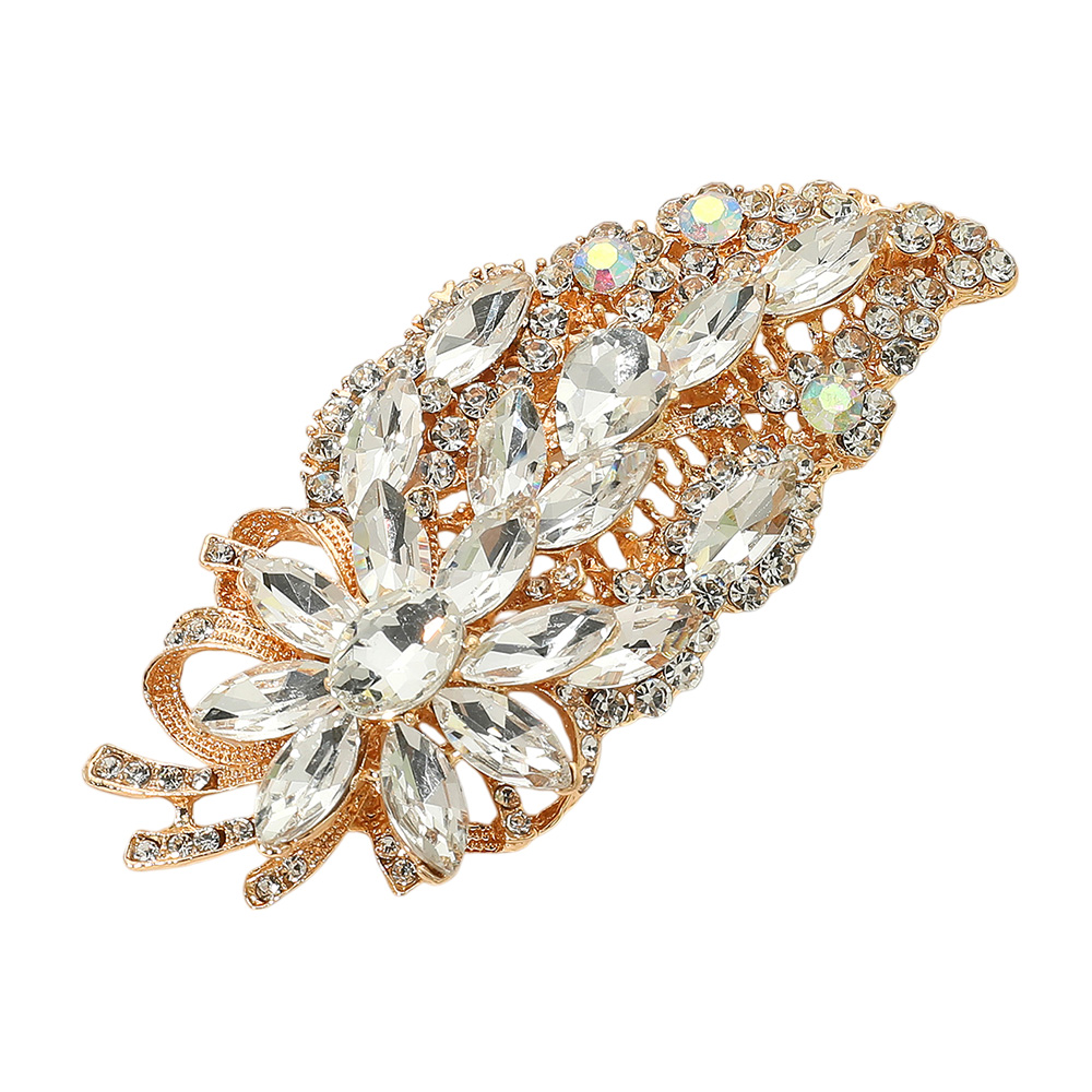 Details • Size : 2.5" X 3.8" • Pin Brooch • Add a pop of glamour with this stunning brooch featuring a floral motif and an array of sparkling stones. Ideal for special occasions or to elevate everyday outfits, this piece combines charm and brilliance in a classic, eye-catching design. • Lead and Nickel Compliant