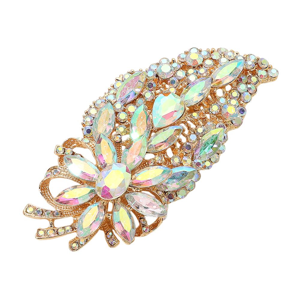 Flower Stone Cluster Pointed Glass Stone Embellished Leaf Pin Brooch