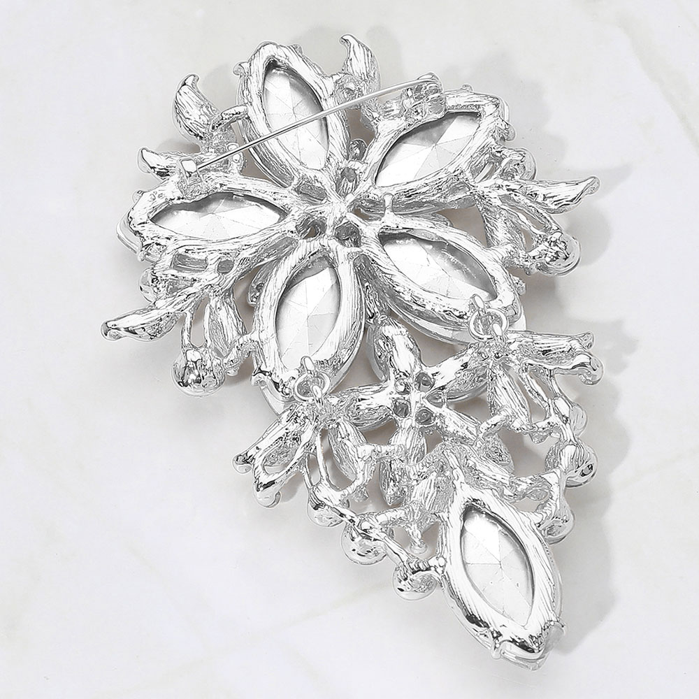 • Sparkling floral marquise gemstone cluster brooch featuring layered petal shapes and radiant faceted stones. A statement accessory that adds eye-catching brilliance to jackets, dresses, scarves, hats, and special occasion outfits.
