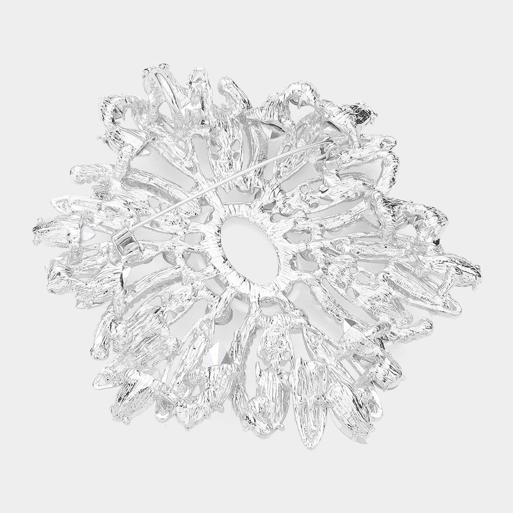Crystal Stone Paved Flower Pin Brooch