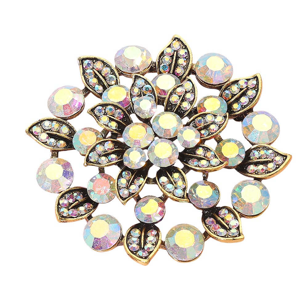 Details • Size : 2.8" X 2.8" • Pin Brooch • Enhance your style with this crystal flower brooch, designed with sparkling stones arranged in a floral and leaf motif. A versatile accessory perfect for weddings, parties, or daily wear, this elegant pin adds charm to jackets, scarves, handbags, or hats and makes a thoughtful gift for someone special. • Lead and Nickel Compliant