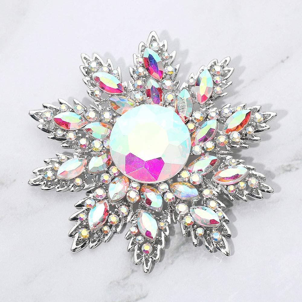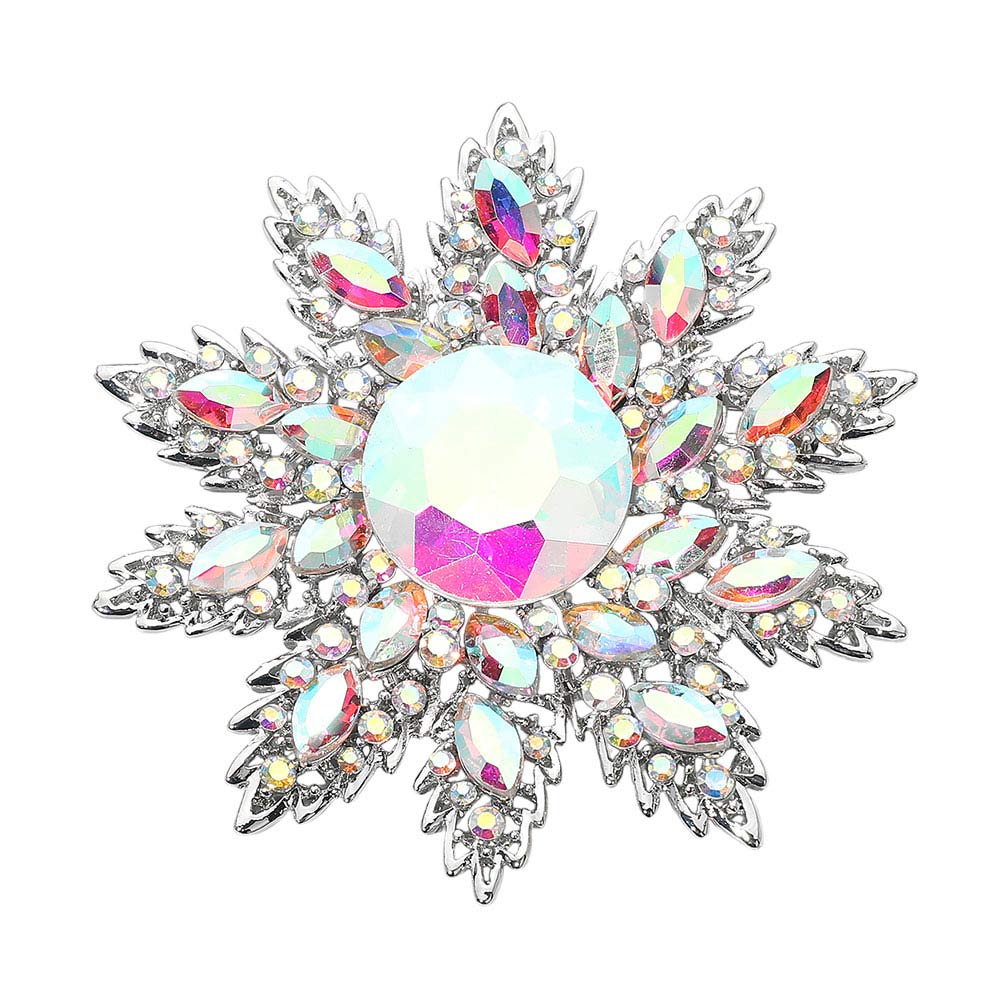 Details • Size : 3.3" X 3.5" • Pin Brooch • Make a statement with this crystal floral starburst brooch, featuring a radiant layered design and a brilliant center stone that catches the light beautifully. A versatile accessory for elevating jackets, scarves, handbags, or special occasion looks. • Lead and Nickel Compliant