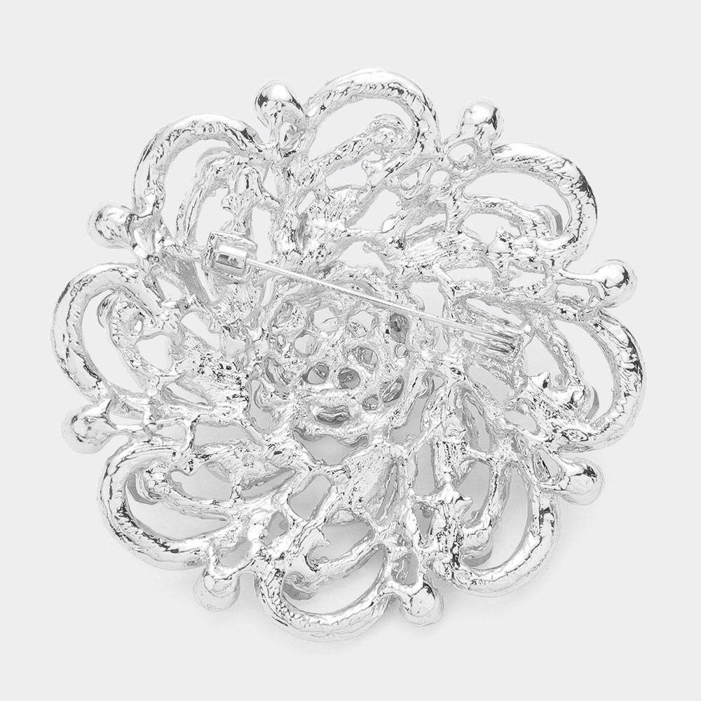 Pearl Centered Bling Studded Flower Pointed Bolo Tie Necklace