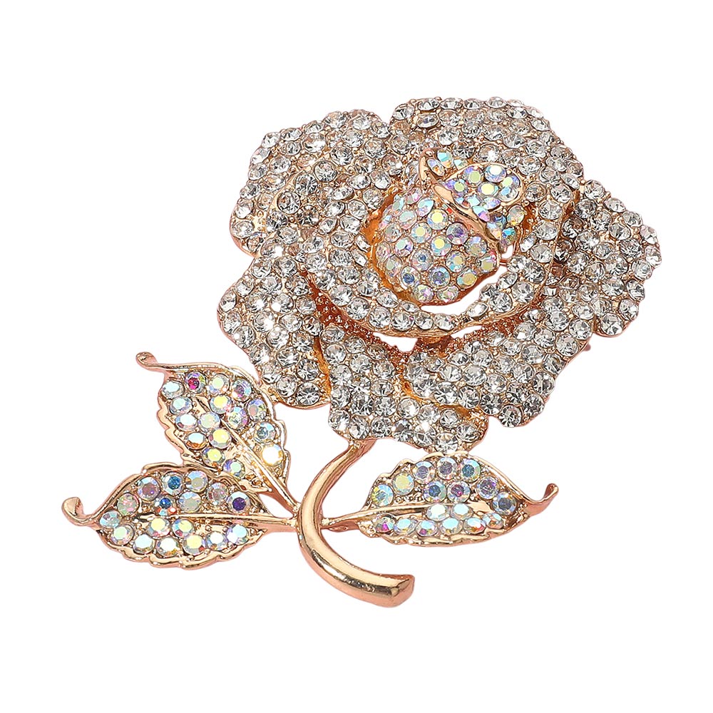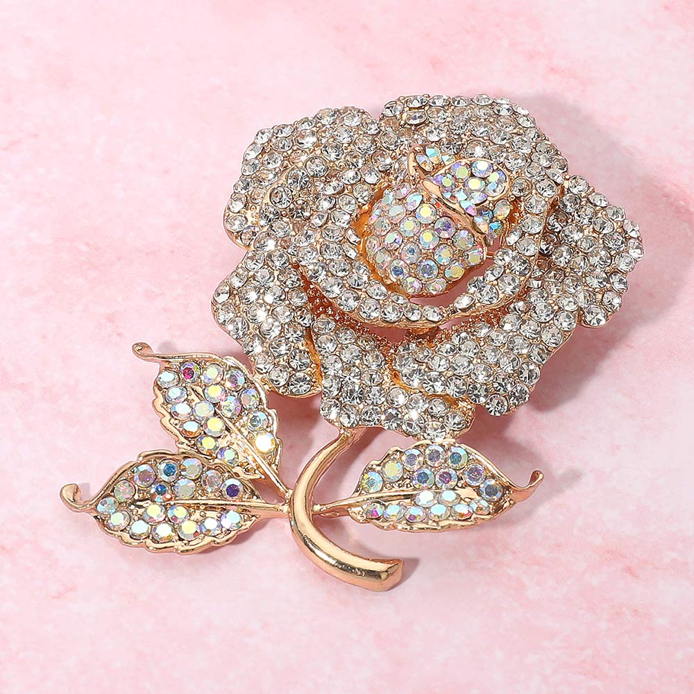 • Add a touch of romance and sparkle with this crystal rose brooch, beautifully designed with shimmering stones for a radiant look. Perfect as a statement accessory on jackets, dresses, scarves, or handbags, this floral pin is ideal for weddings, special occasions, or as a thoughtful gift for someone special.