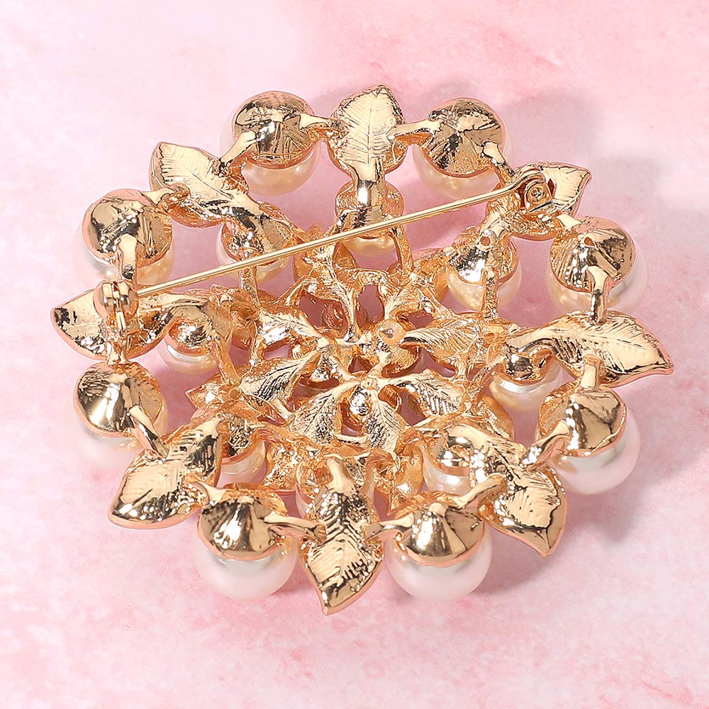 Pearl Stone Cluster Embellished Chunky Round Pin Brooch