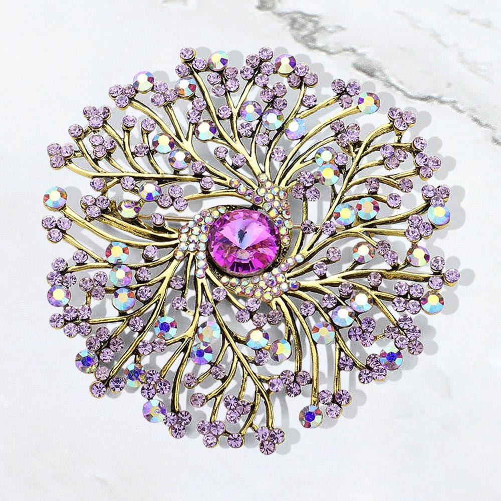 Details • Size : 3.6" X 3.6" • Pin Brooch • A dazzling brooch featuring an intricate burst design that captures light beautifully for an elegant, eye-catching finish. Perfect for adding a refined touch to formal wear, accessories, or special-occasion outfits with its sparkling, detailed craftsmanship. • Lead and Nickel Compliant