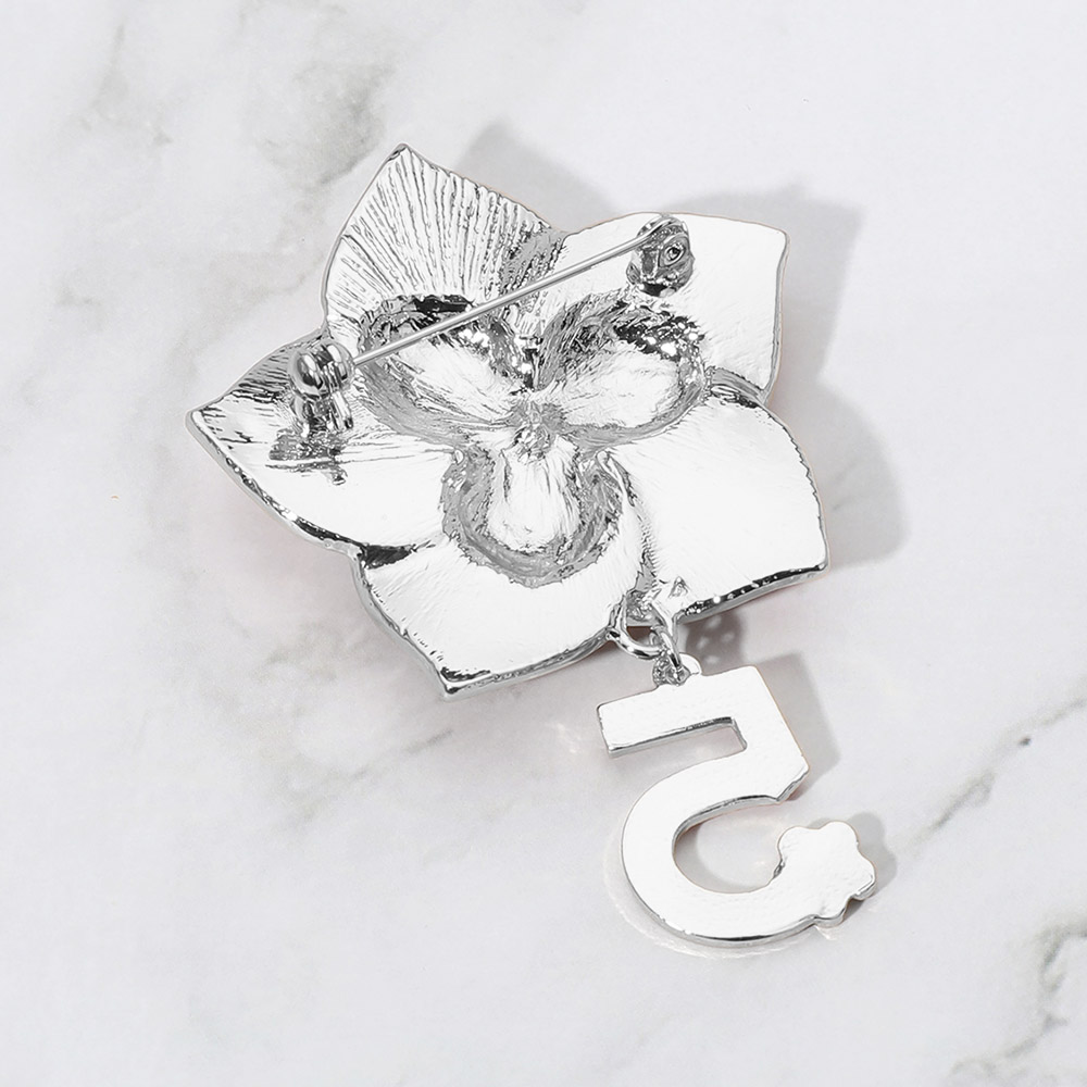 Stone Pointed Enamel Flower Number Five Dangle Pin Brooch