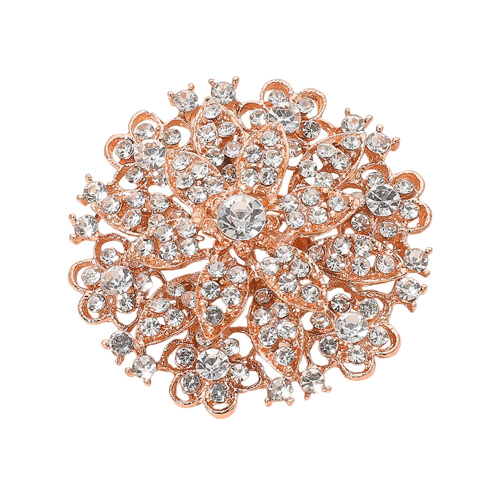 • Bring a touch of brilliance to formal outfits with this vintage-inspired floral brooch, featuring shimmering crystals arranged in an ornate design. Ideal for weddings, evening attire, and special occasions, it adds elegant sparkle and a sophisticated accent to dresses, shawls, and outerwear.