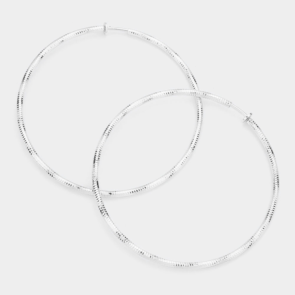2.4 Inch Textured Metal Clip On Hoop Earrings
