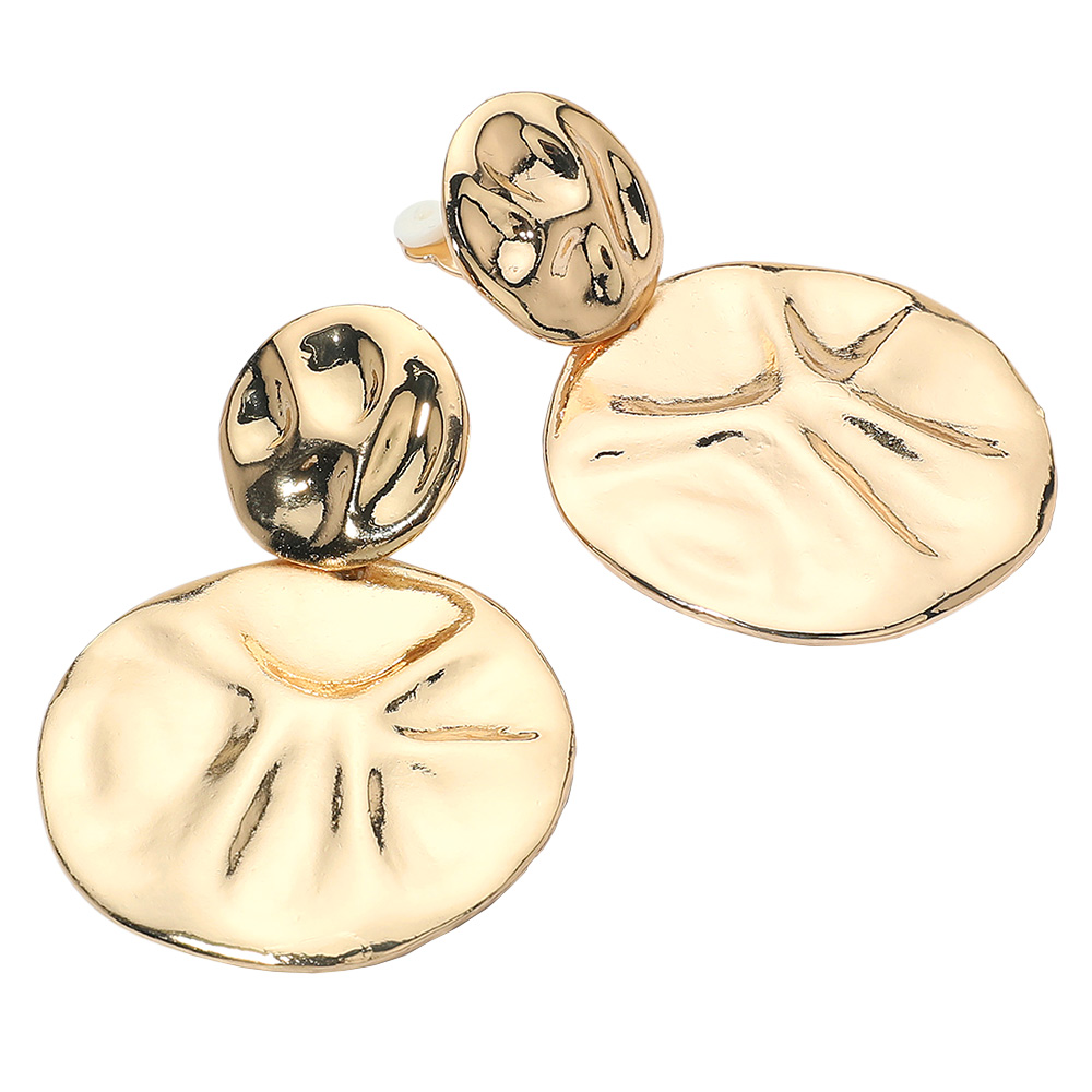 Details • Size : 1.75" X 2.5" • Clip On • Bold abstract textured drop clip-on earrings designed with an artistic, modern flair. Featuring organic shapes and a polished finish, these statement earrings elevate any outfit. Comfortable clip-on style makes them perfect for both pierced and non-pierced ears. • Lead and Nickel Compliant