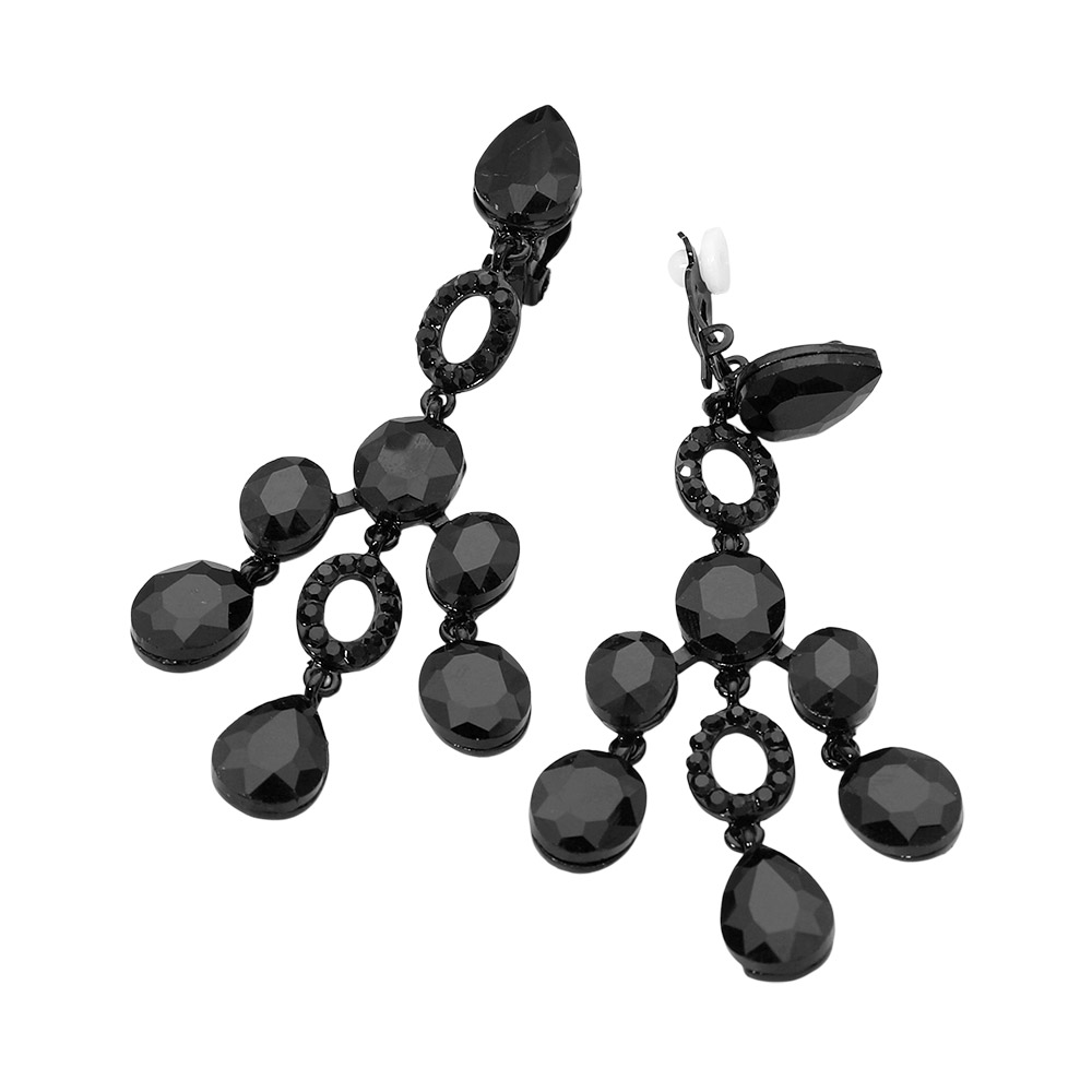 • Statement chandelier earrings featuring cascading faceted accents with a clip-on design for comfortable, secure wear. Ideal for special occasions, evening looks, and boutique collections, offering elegant movement, eye-catching sparkle, and versatile styling appeal without pierced ears.