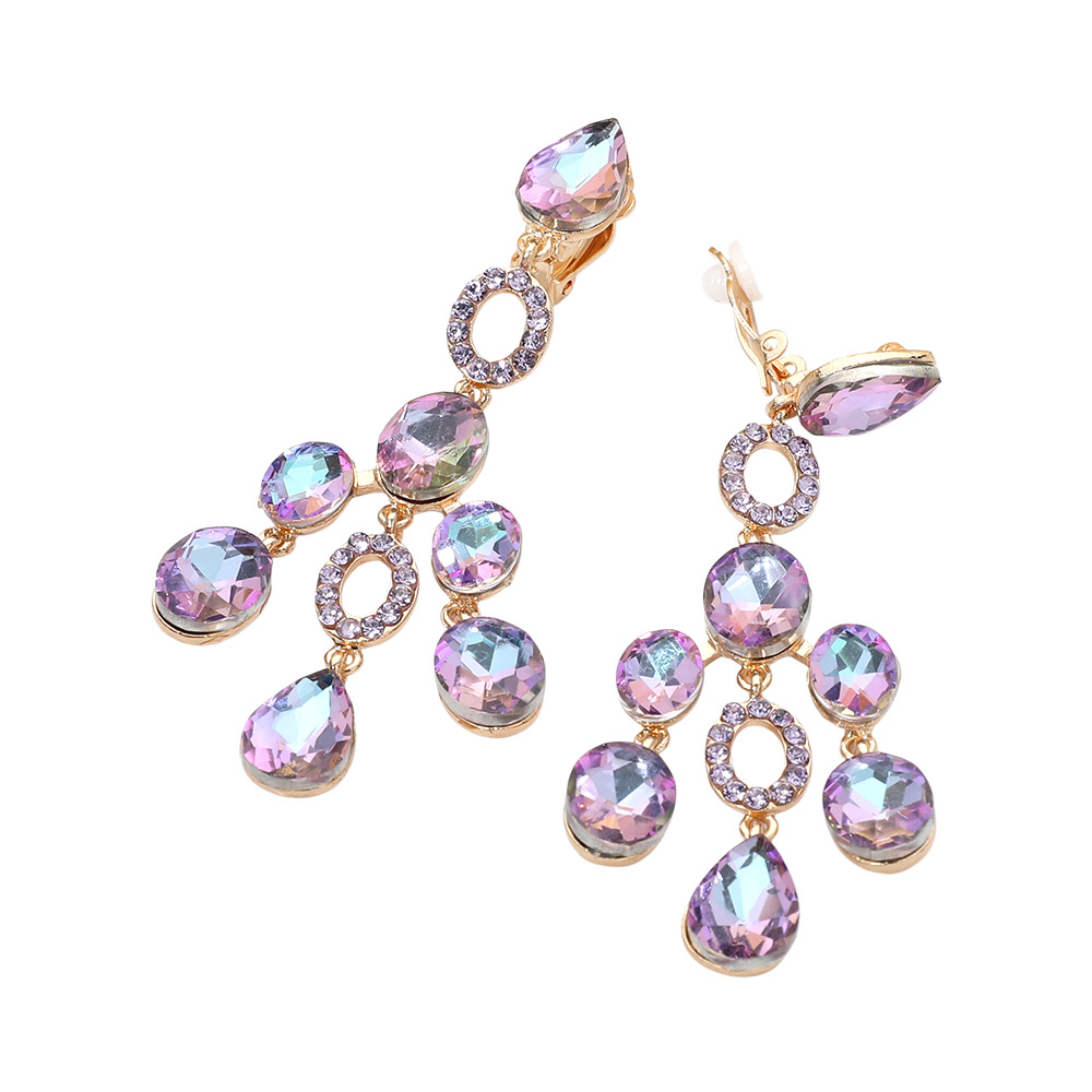 Details • Size : 1.2" X 3.2" • Clip On • Statement chandelier earrings featuring cascading faceted accents with a clip-on design for comfortable, secure wear. Ideal for special occasions, evening looks, and boutique collections, offering elegant movement, eye-catching sparkle, and versatile styling appeal without pierced ears. • Lead and Nickel Compliant