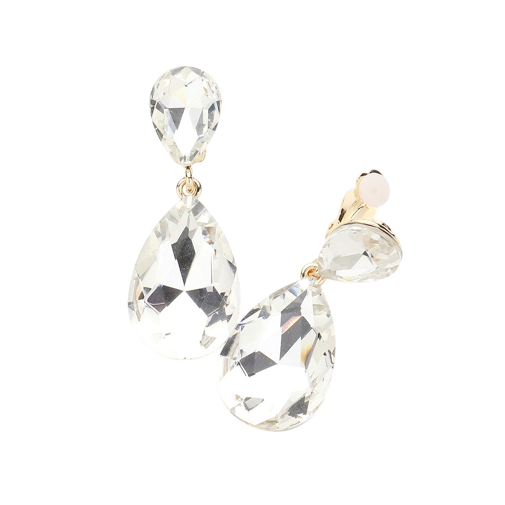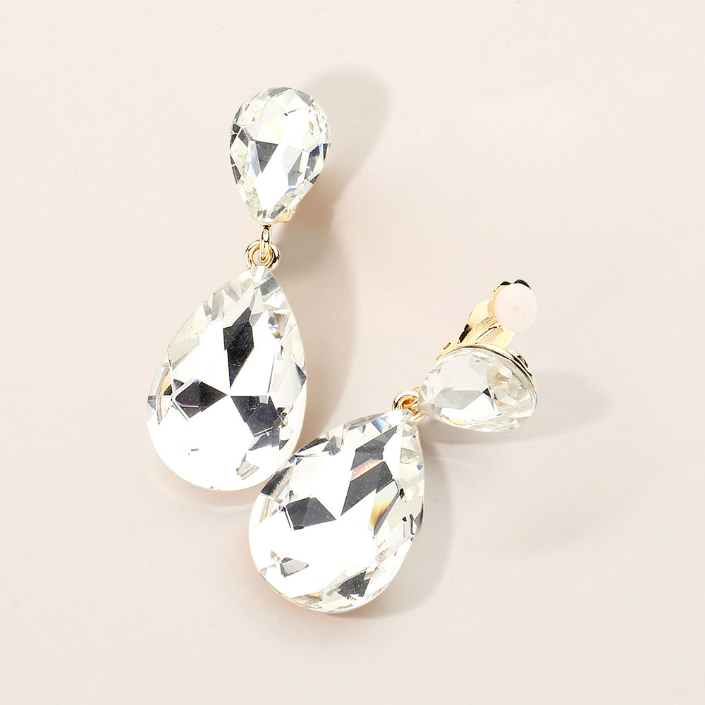 • Chic teardrop crystal clip-on earrings with a stunning faceted finish for timeless elegance. Designed for comfort without the need for piercings, these lightweight earrings add refined sparkle to any outfit—ideal for formal events, parties, or evening occasions.