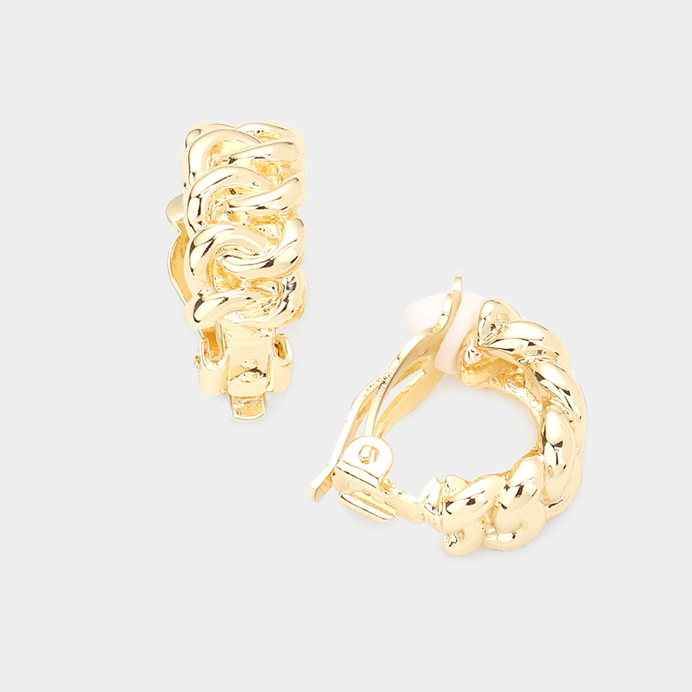 Metal Chain Half Hoop Clip on Earrings