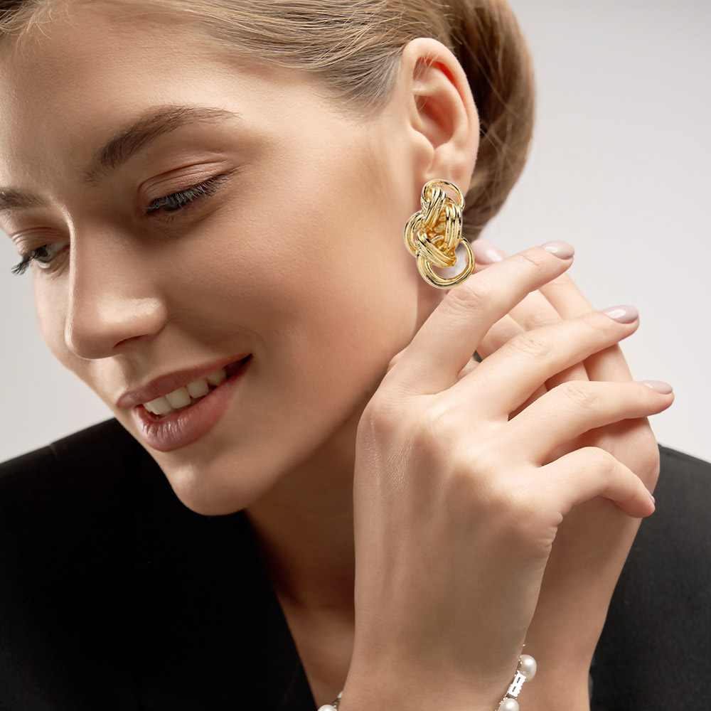 Details • Size : 0.9" X 1.3" • Clip On • These textured knot clip-on earrings blend modern artistry with timeless elegance. The intricate interwoven design adds depth and dimension, making them a chic statement piece for any occasion. Comfortable and stylish, they offer a polished finish without the need for piercings. • Lead and Nickel Compliant