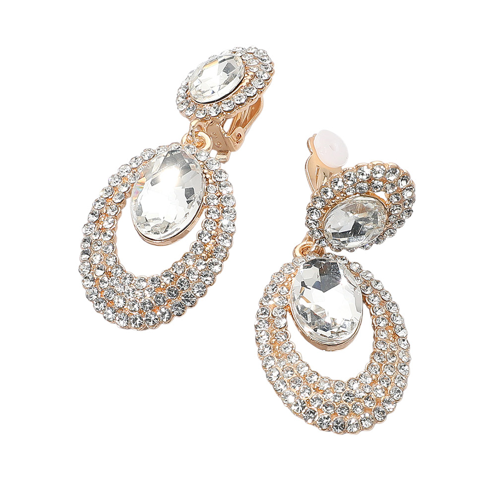 Oval Halo Drop Evening Clip On Earrings Oval Halo Drop Evening Clip On Earrings