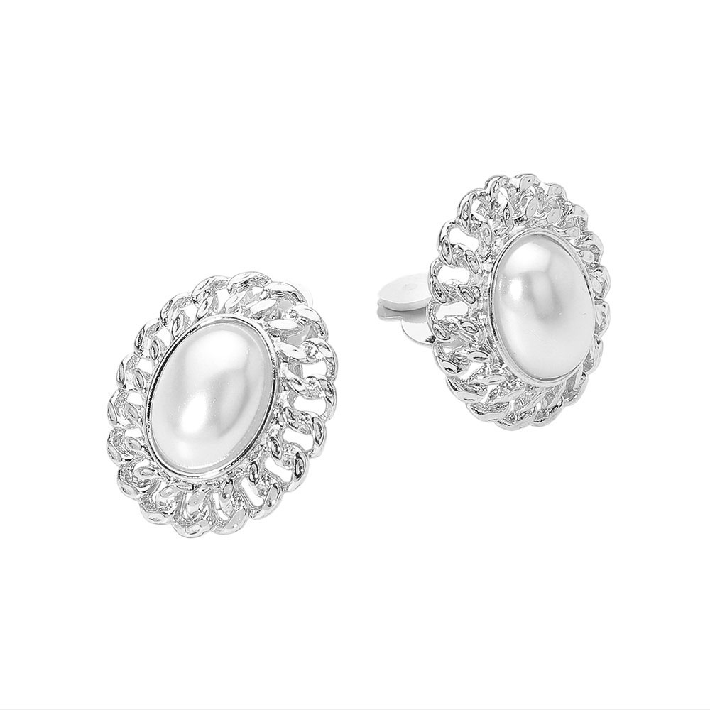 Details • Size : 1" X 1.2" • Clip On • Classic oval dome clip-on earrings featuring a smooth centerpiece surrounded by an intricate textured frame. Designed for comfort without pierced ears, these elegant statement studs bring a timeless vintage-inspired touch to any look. • Lead and Nickel Compliant