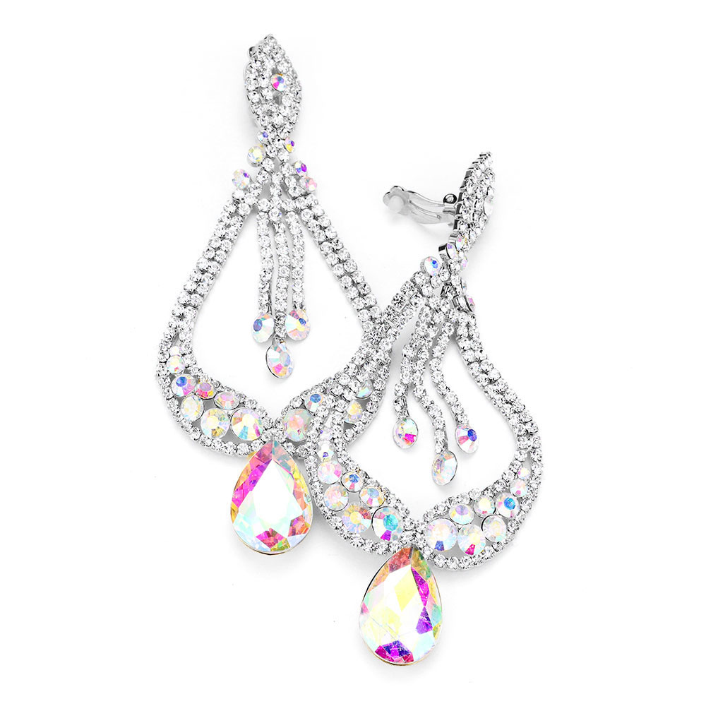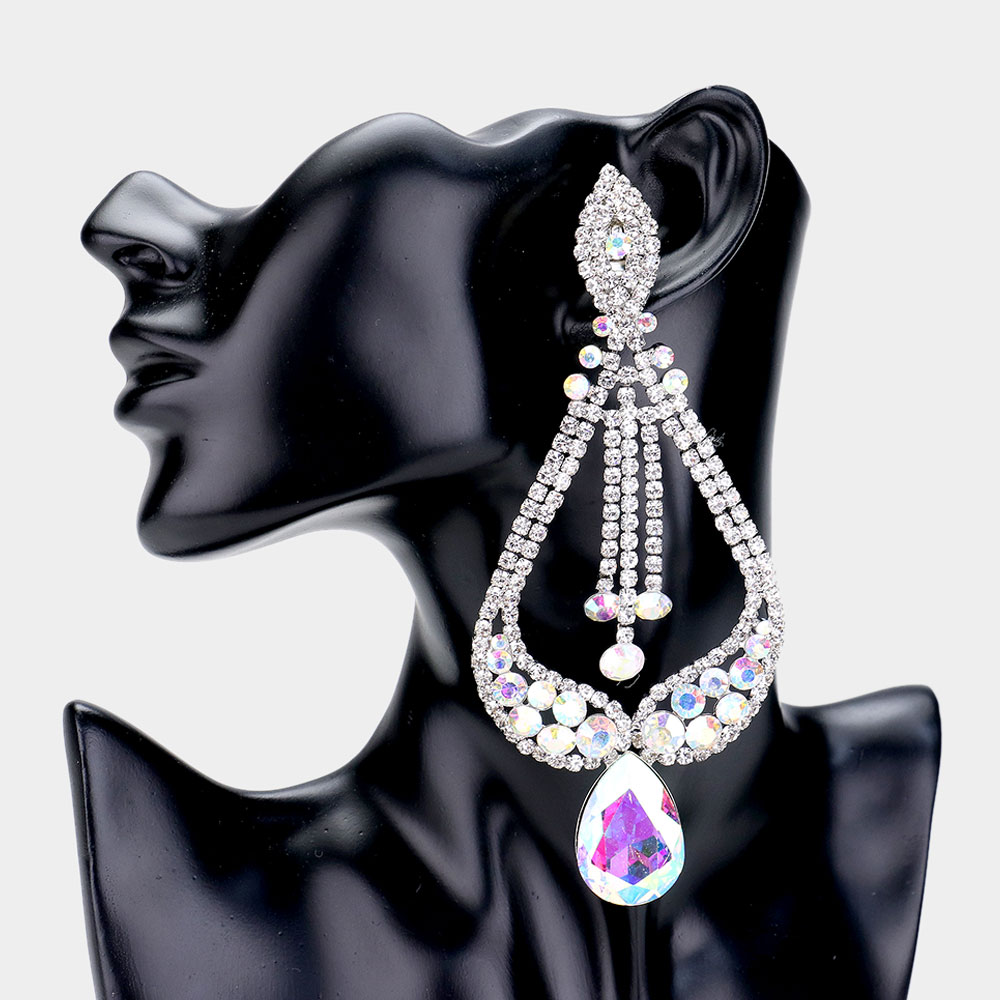 Oversized Pave Glass Teardrop Chandelier Evening Earrings