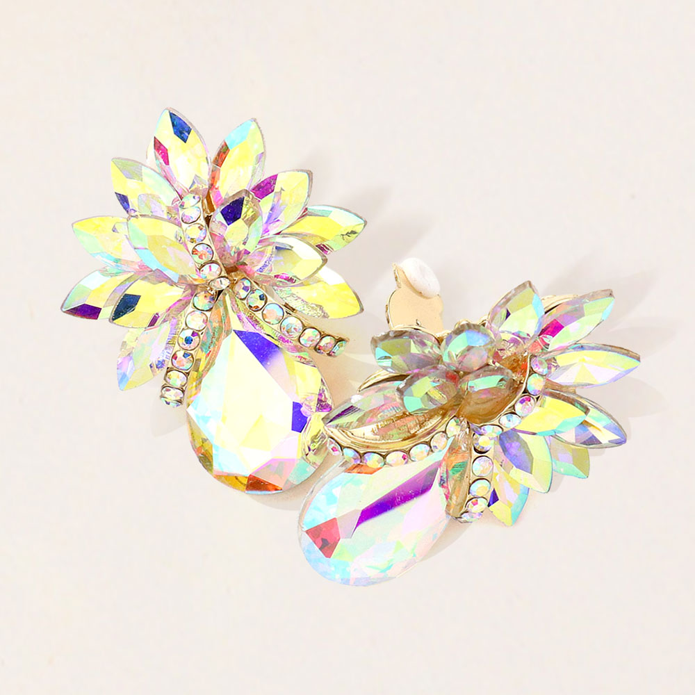 Teardrop Stone Accented Clip on Evening Earrings Teardrop Stone Accented Clip on Evening Earrings