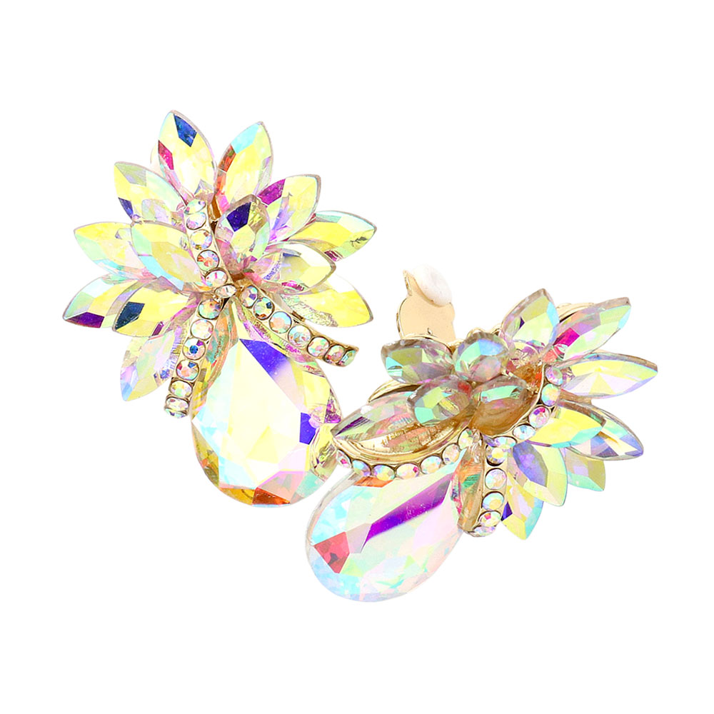 Teardrop Stone Accented Clip on Evening Earrings